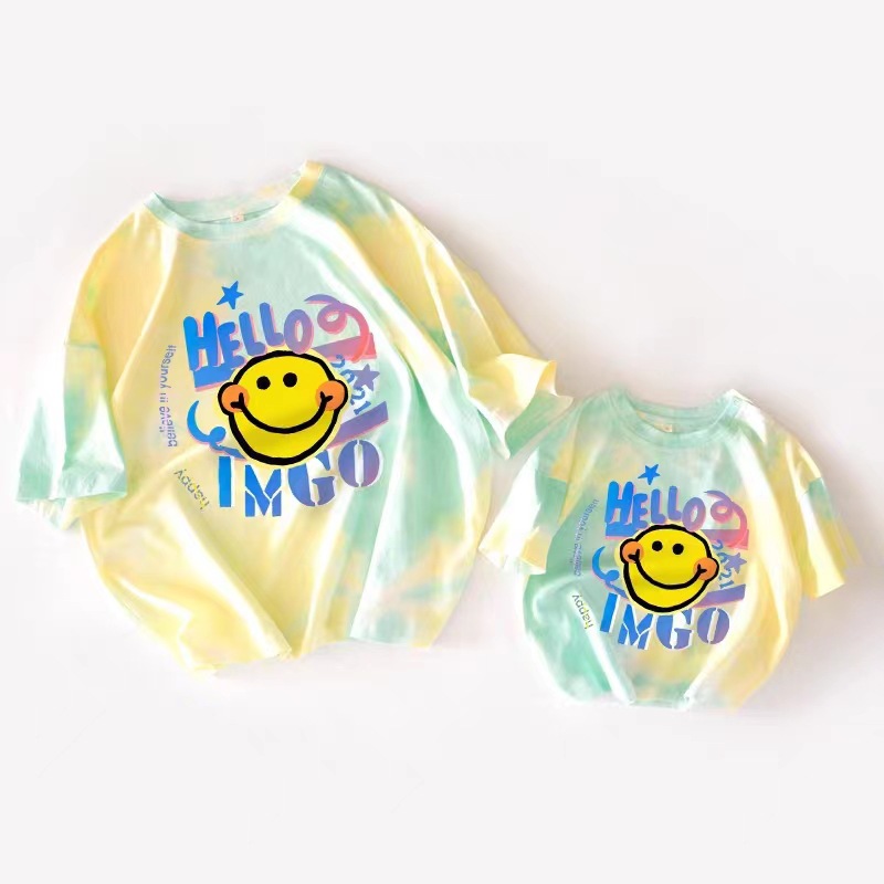 여름 코트 어린이 어깨 소매 반팔 티셔츠 3 명의 어머니와 아이의 가족을위한 부모-자식 복장 머리카락 세대의 느슨한 버전