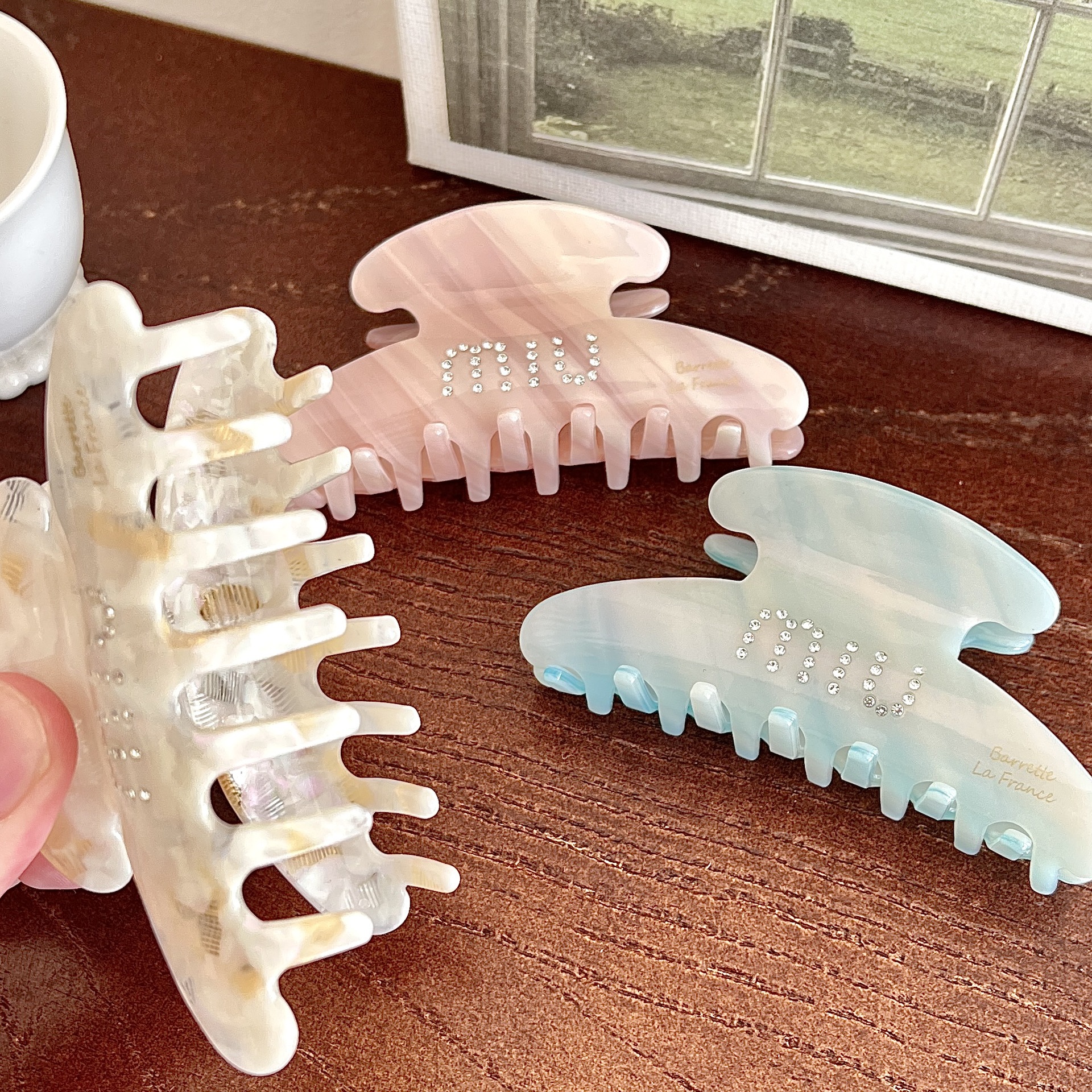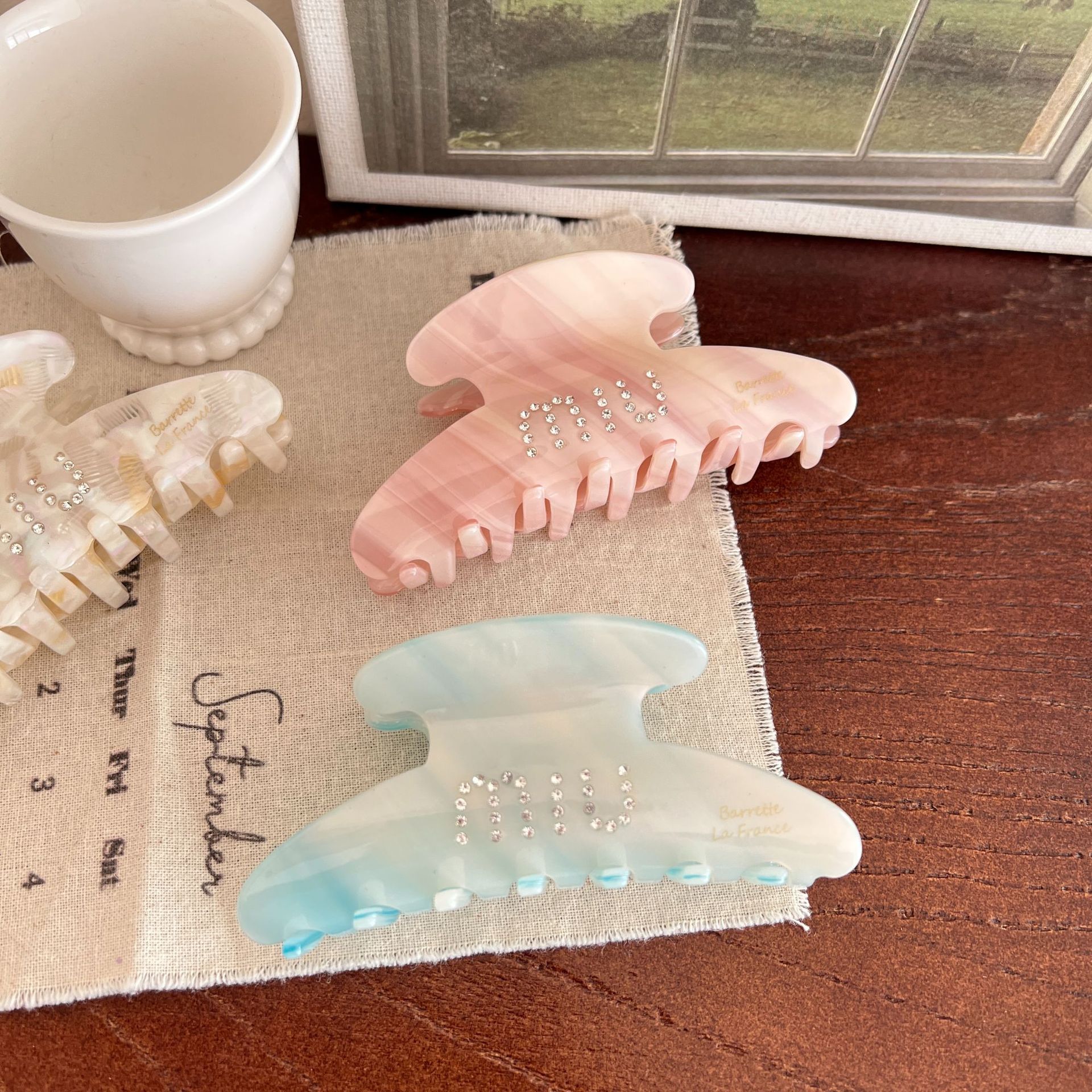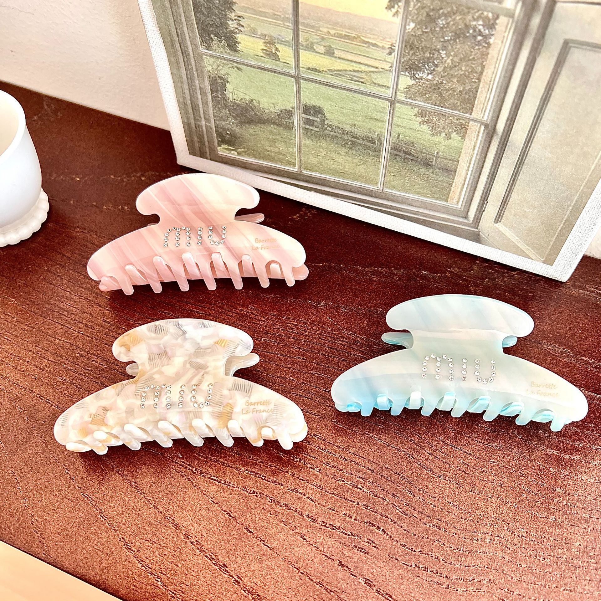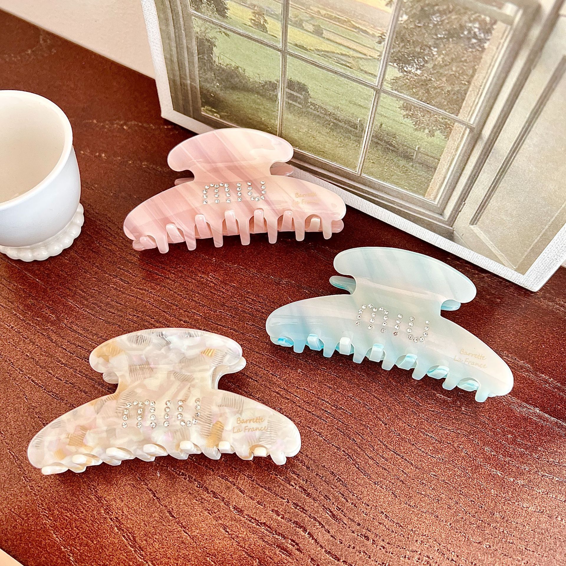 일본과 한국의 뉴 프랑스 골드 라벨 고급 아세트산 헤어 액세서리 라이트 우드 상어 클립 대형 우아한 헤어 그랩 클립