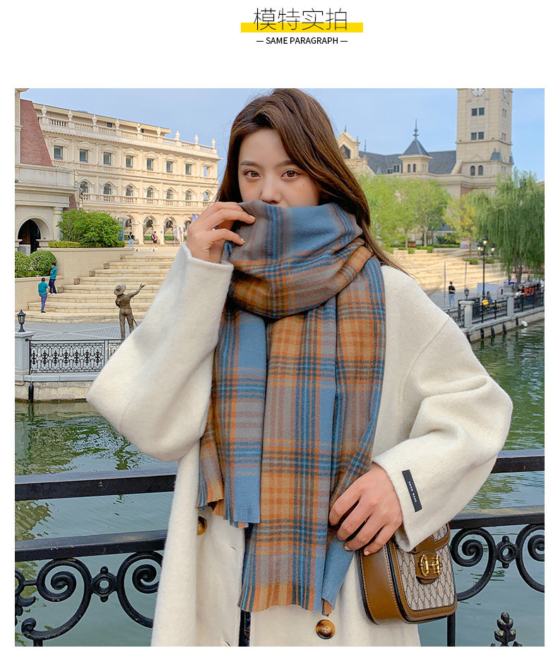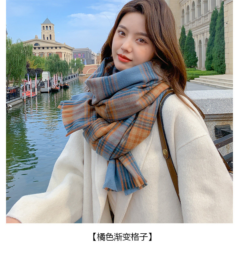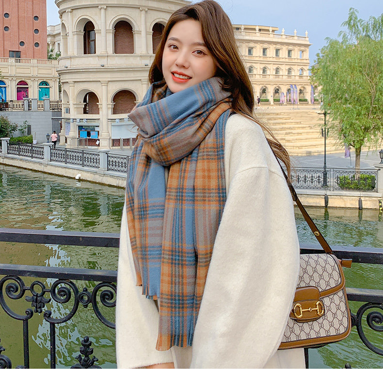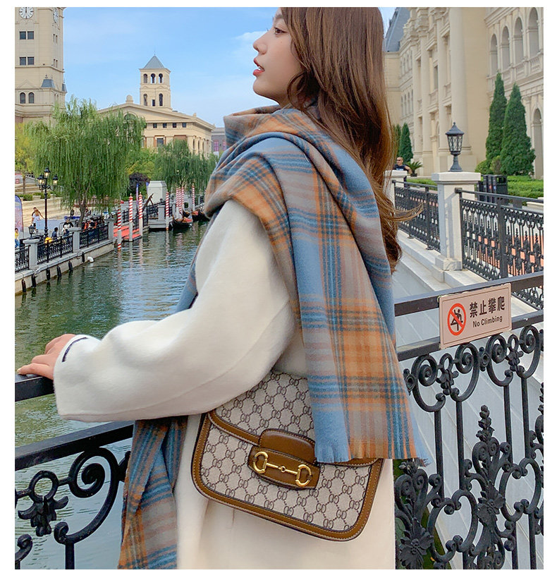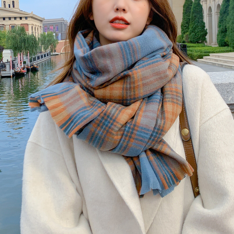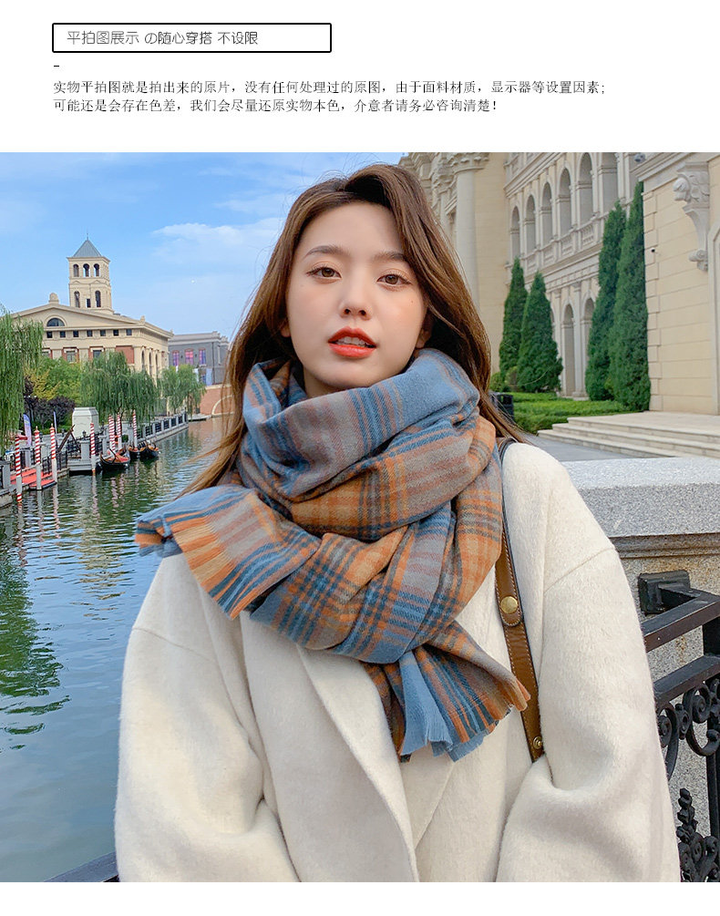 틈새 디자이너 빈티지 격자 무늬 다목적 모조 캐시미어 가을과 겨울 술 스카프 여성용 화이트 릴리 스카프스토어 가기