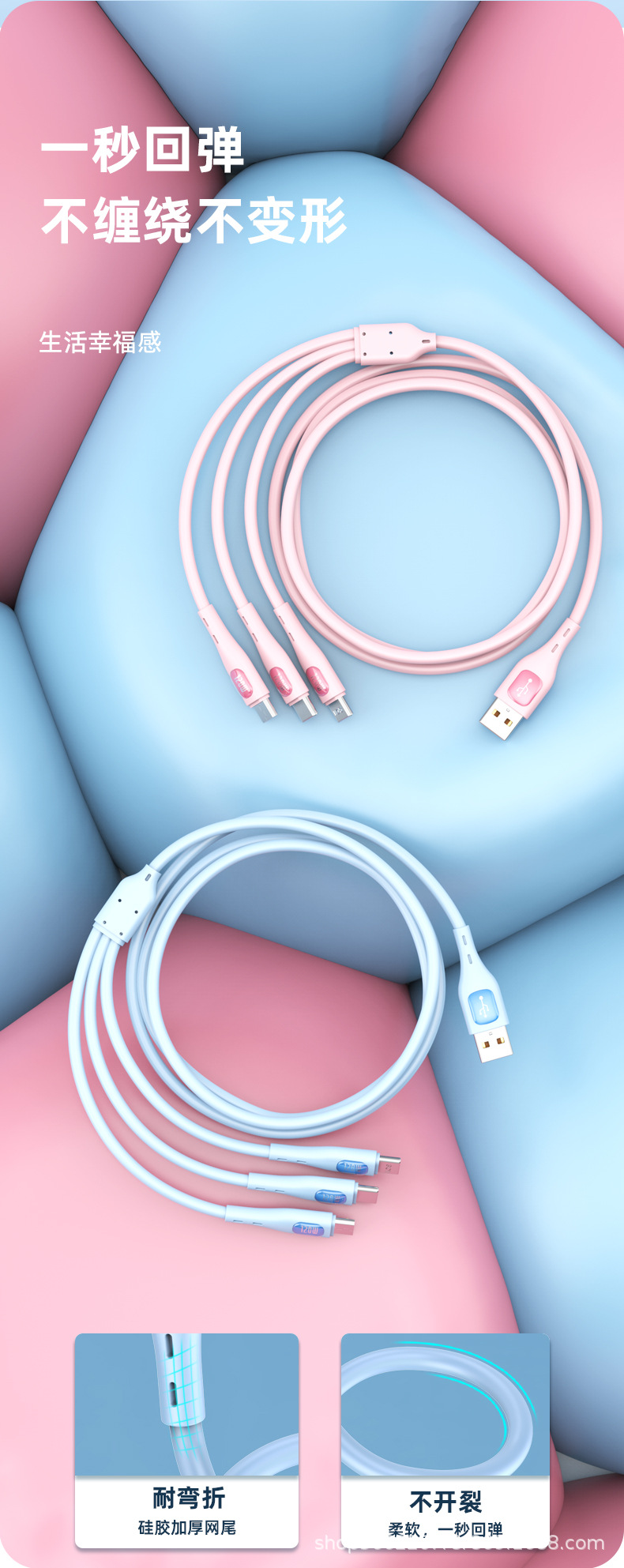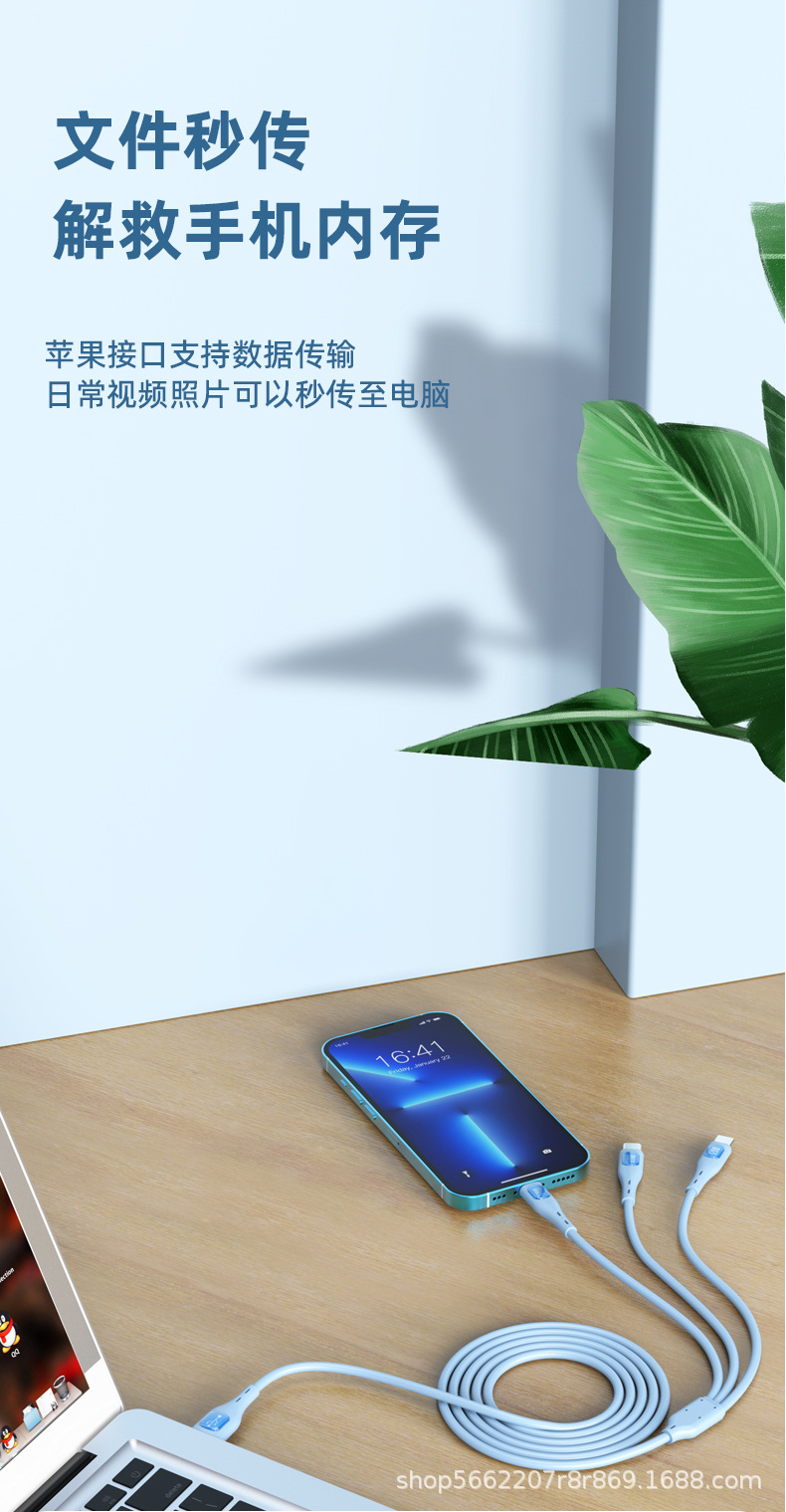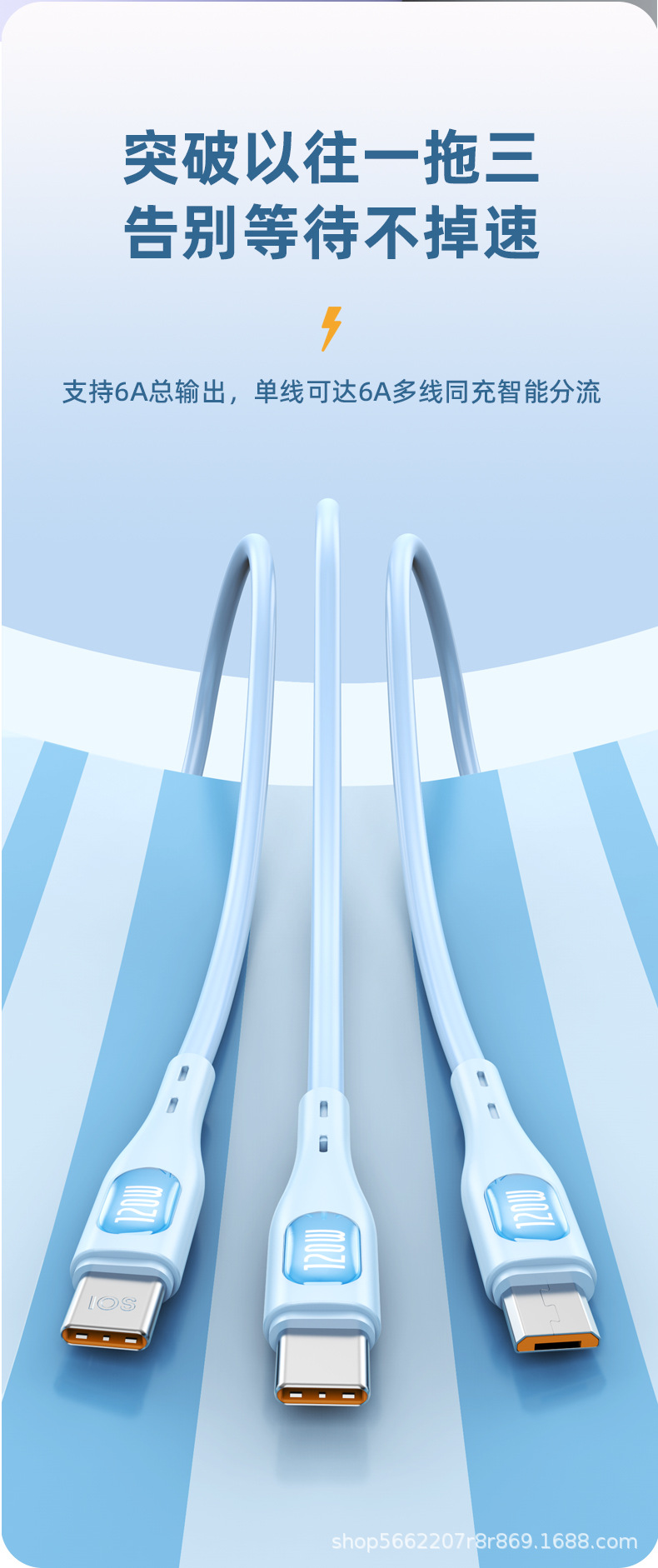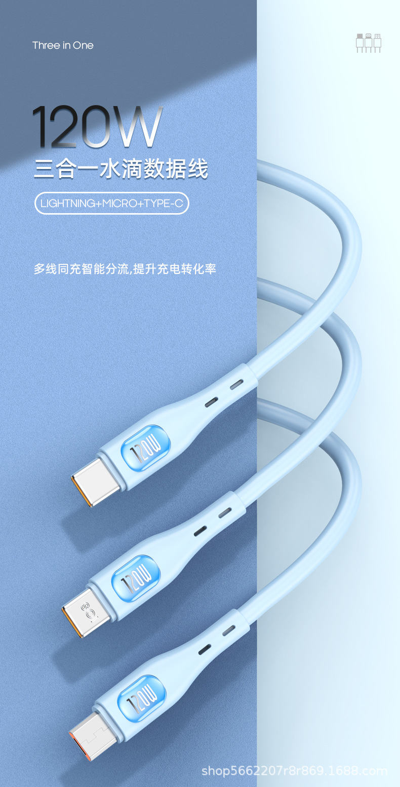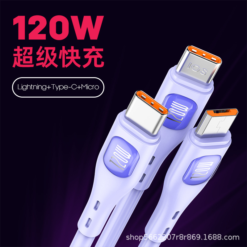 120W 액체 1-3 충전 케이블은 애플 안드로이드 TYPE-C 휴대 전화 3-in-one 고속 충전 데이터 케이블에 적합합니다스토어 가기