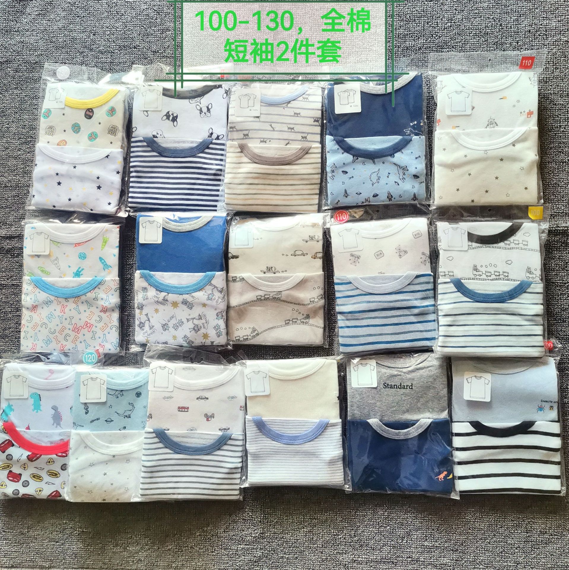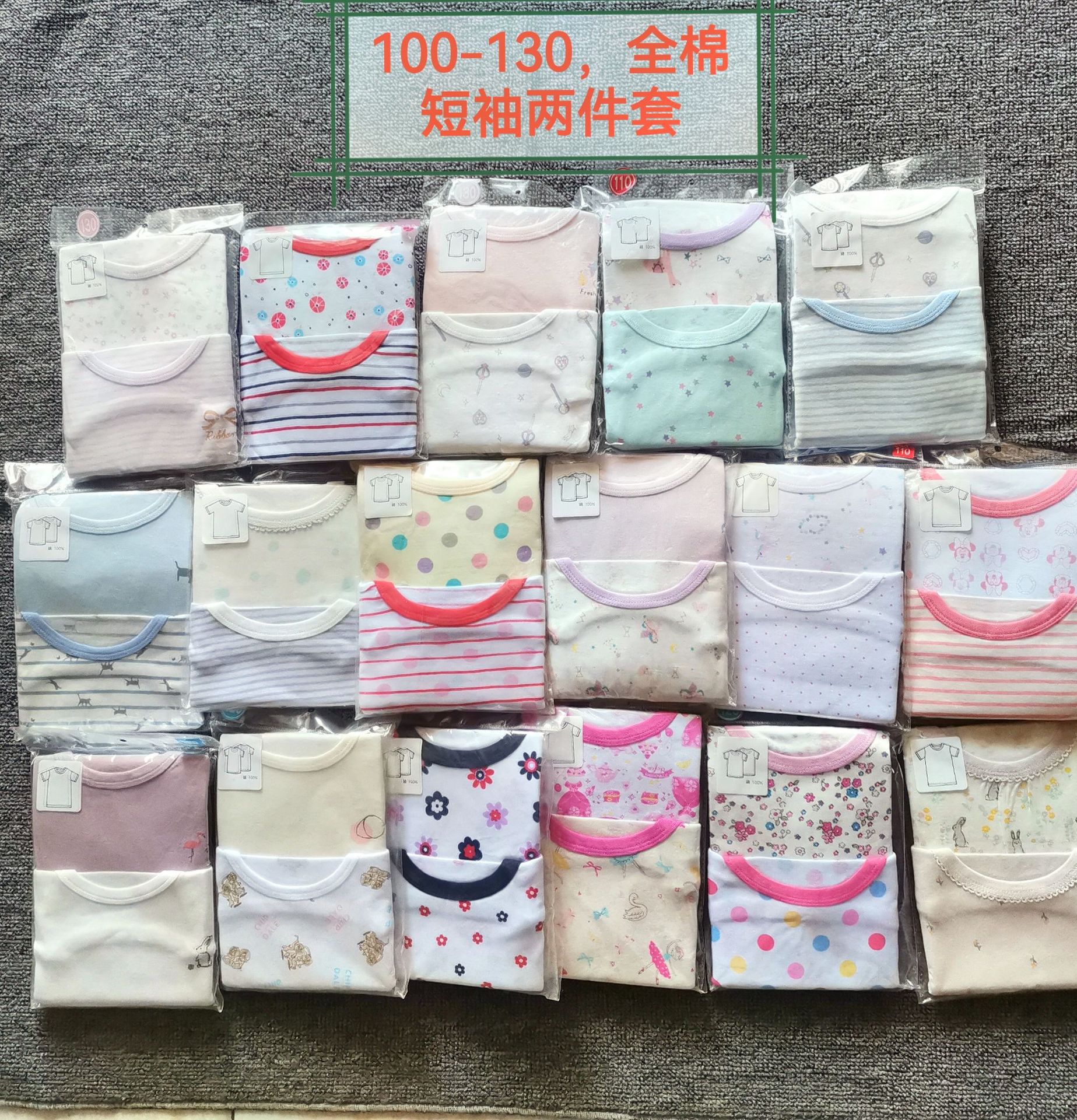 新款出口纯棉全棉儿童中童短袖两件套100-130