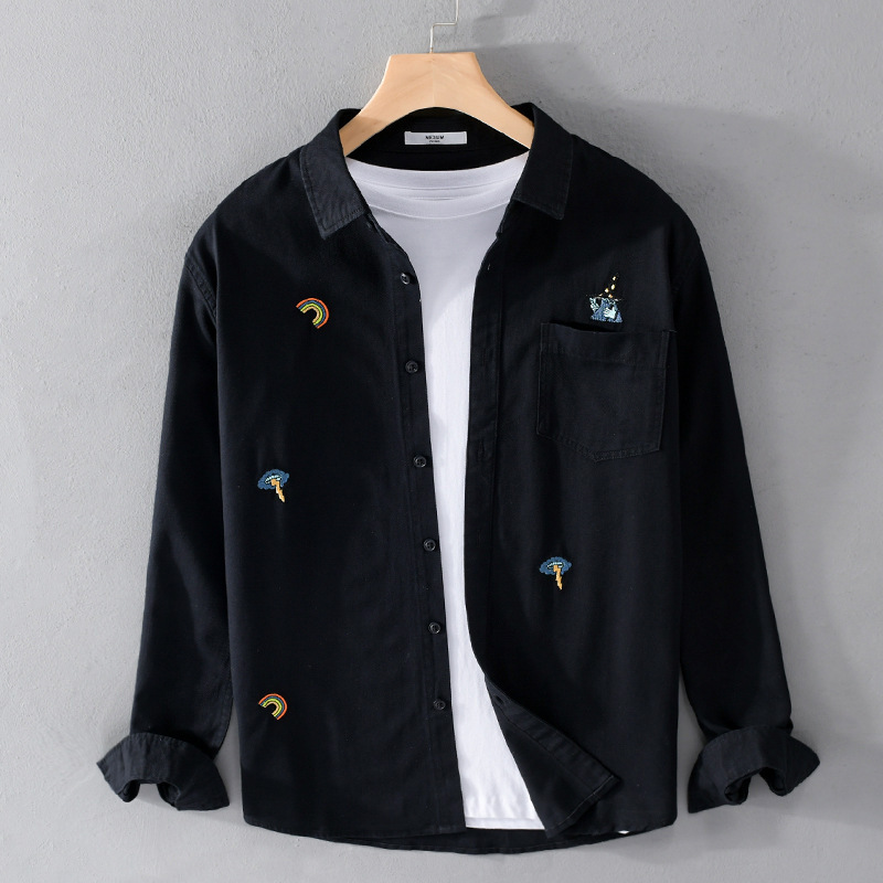 9633 봄 시즌 편안한 면 긴팔 셔츠 독특한 패션 자수 모든 매치 Yipper 잘 생긴 청소년 남성 셔츠