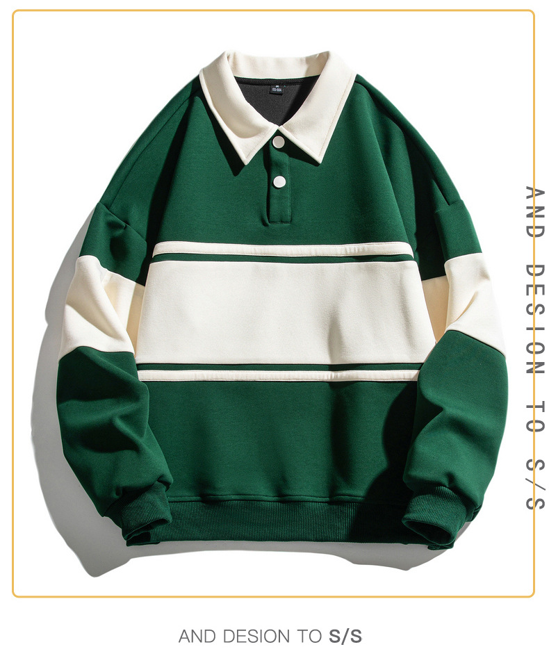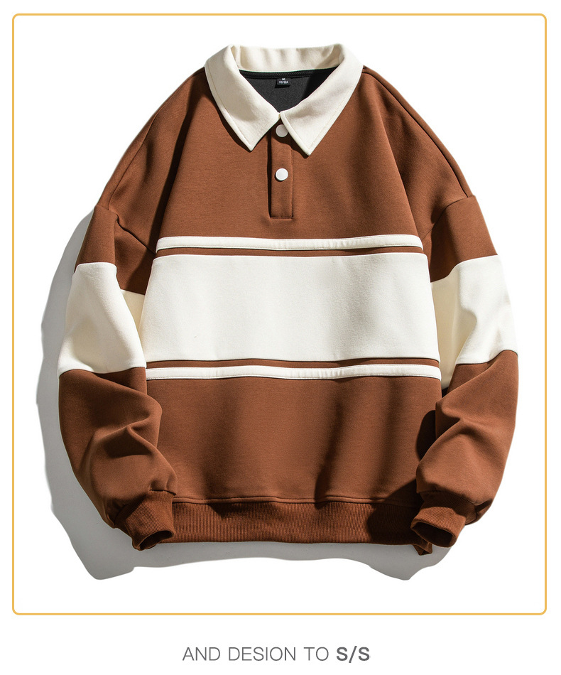 스웨터 남자의 가을 새로운 패션 브랜드 홍콩 스타일 인기있는 느슨한 색상 매칭 라펠 스웨터 남성용스토어 가기