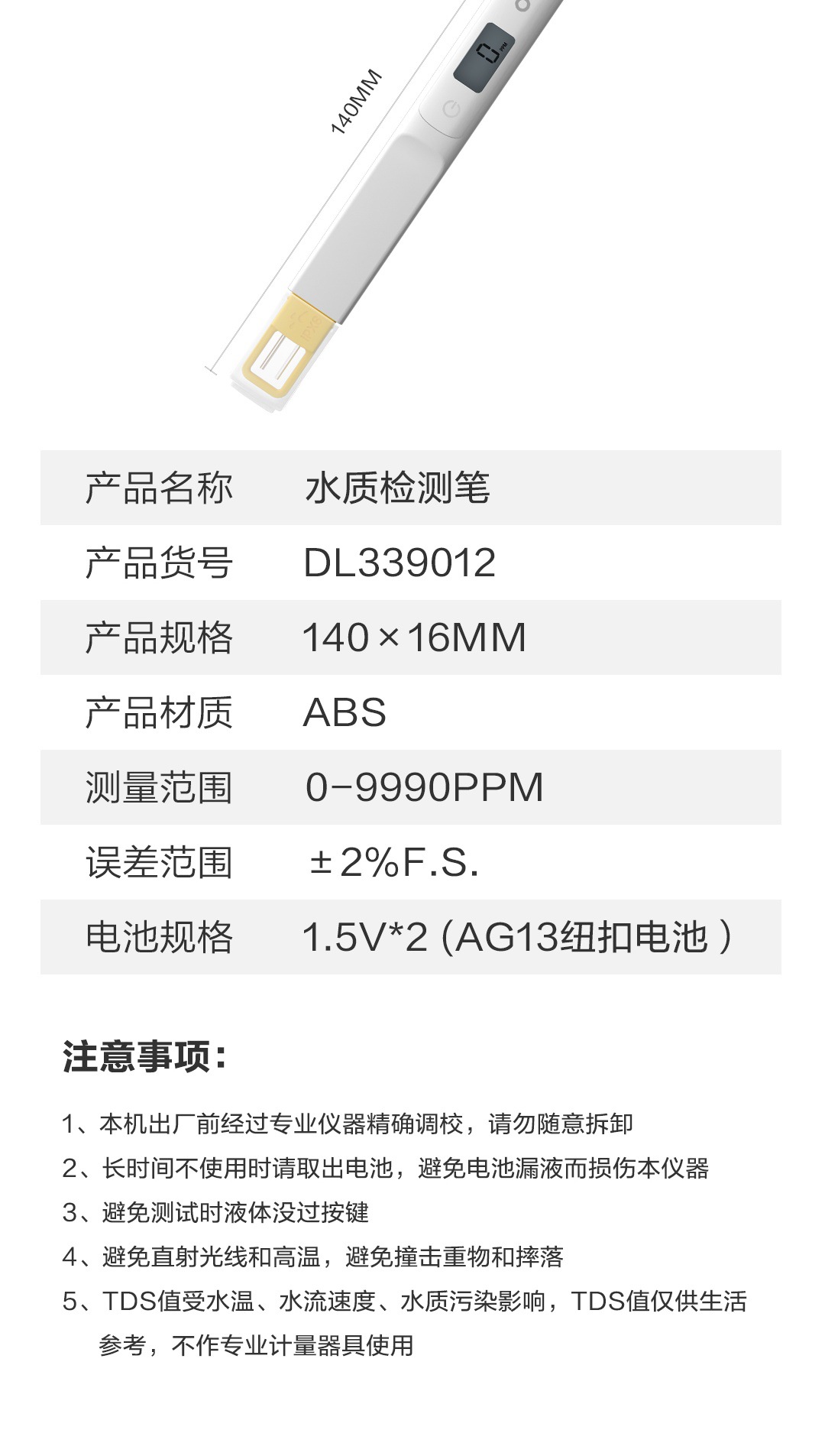 델리 TDS 수질 감지 펜 가정용 순수 음료수 품질 감지기 PPM 고정밀 DL339012