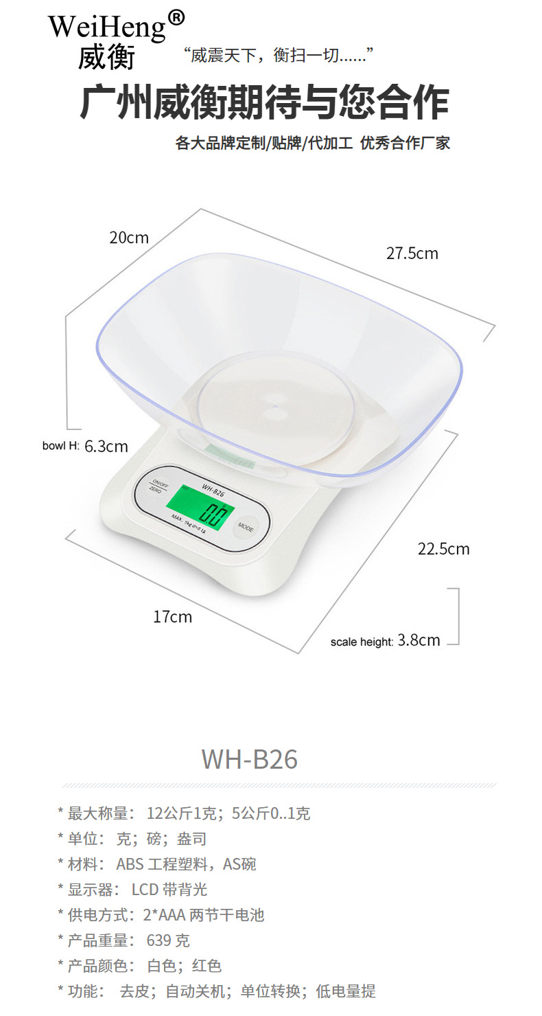 Weiheng weiheng WH-B26 주방 전자 저울 충전 베이킹 저울 12kg 닉 저울 도매스토어 가기