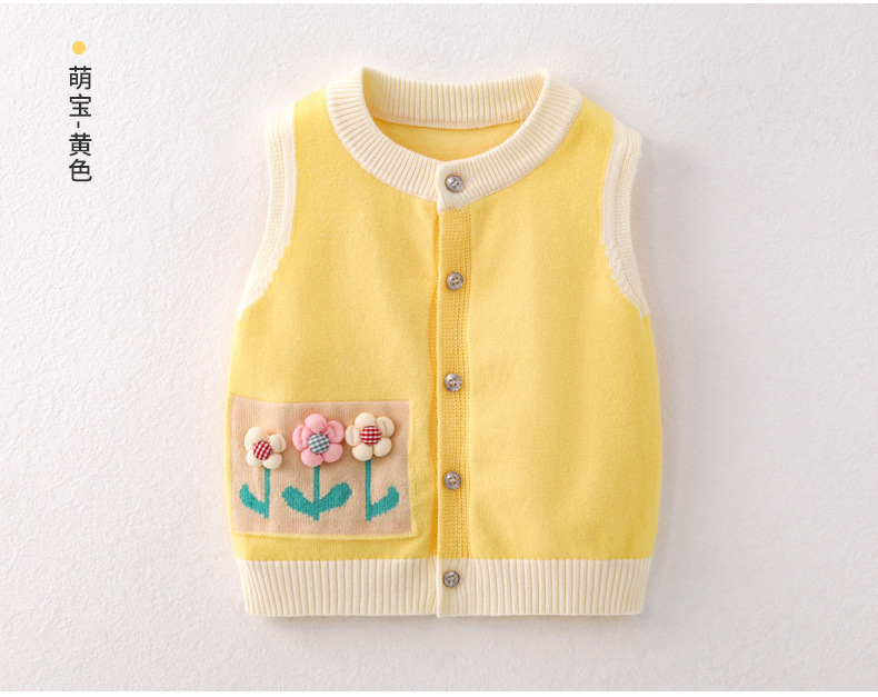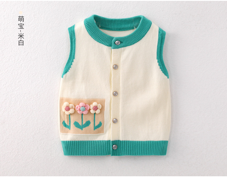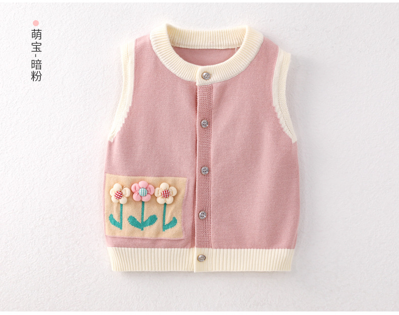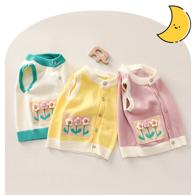 봄과 가을 새로운 아기 면화 부드럽고 섬세한 스웨터 어린이 꽃 카디건 조끼 아기 조끼 달콤한 양복 조끼