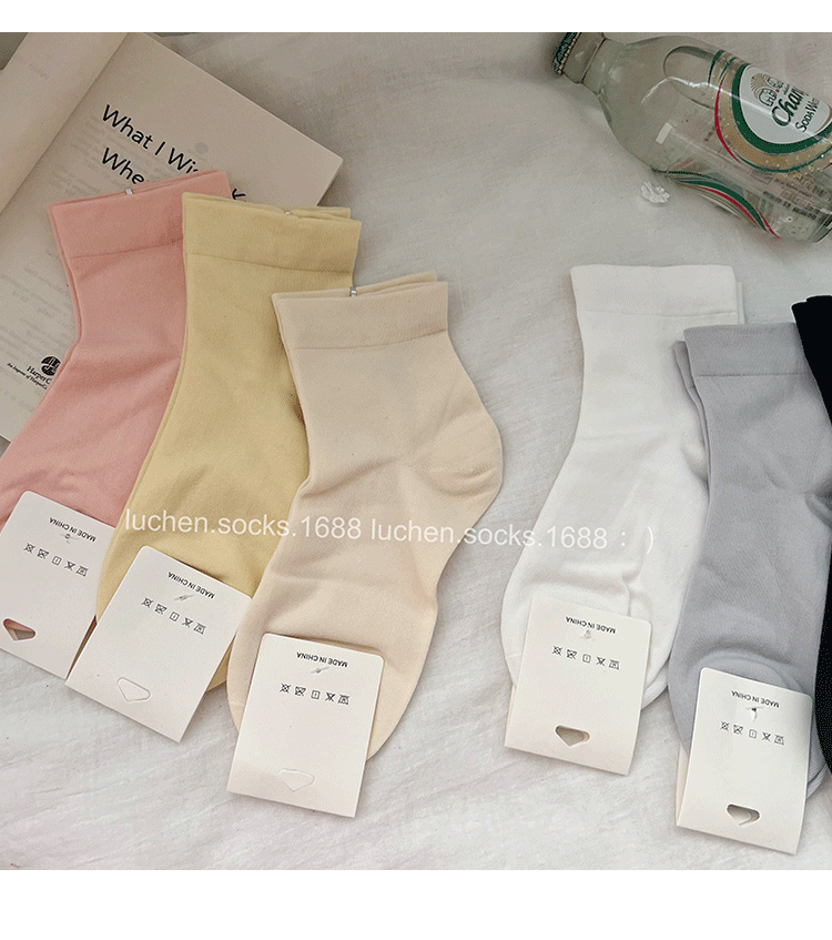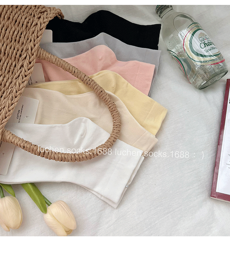 얇은 면 뼈없는 ~ 양말 여성용 짧은 양말 여름 얇은 단색 모든 매치 느슨한 입 짧은 양말 작은 빨간 책 동일스토어 가기