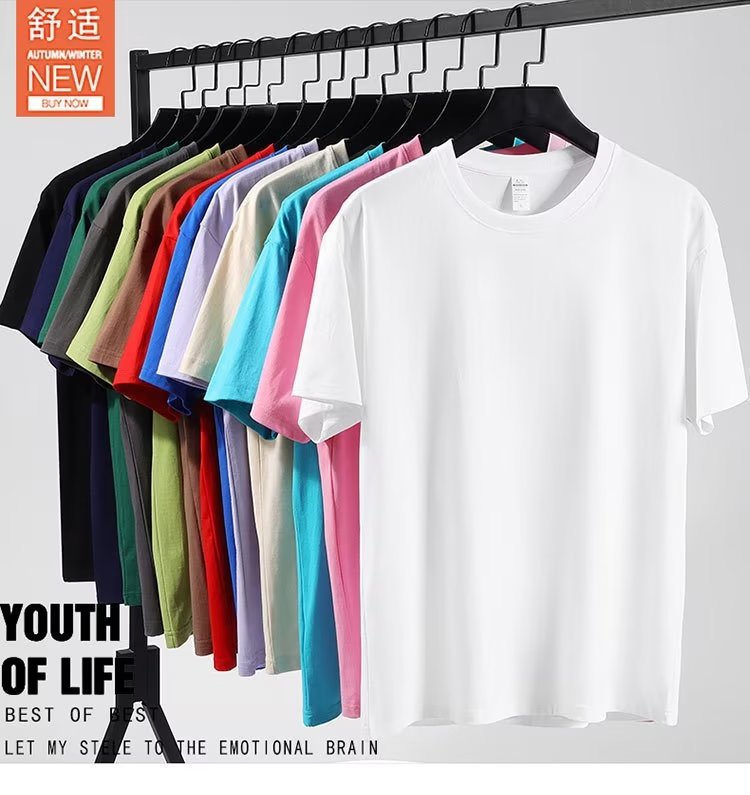 라운드 넥 퓨어 코튼 솔리드 컬러 커플 반팔 베이스 셔츠 티셔츠 화이트 남성 및 여성 티셔츠 퓨어 블랙 반팔 의류 트렌디 탑스토어 가기