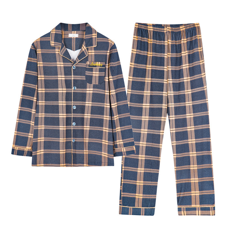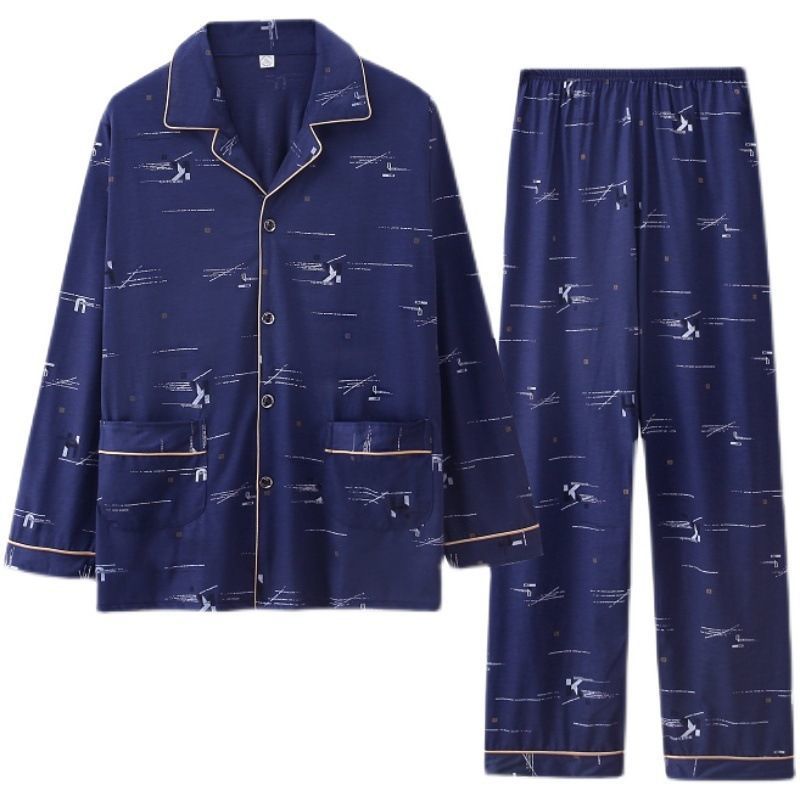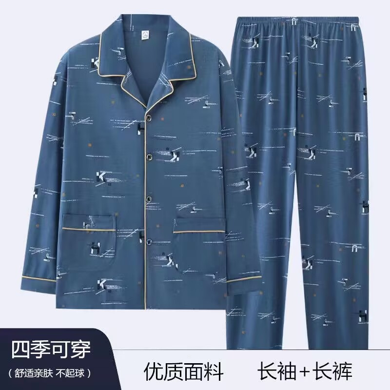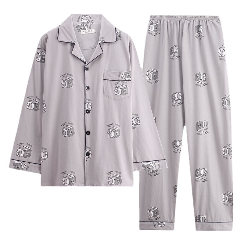 순면 100% 남성 잠옷 봄과 가을 긴 소매 얇은 초대형 가을과 겨울 청소년 가정 의류 세트스토어 가기