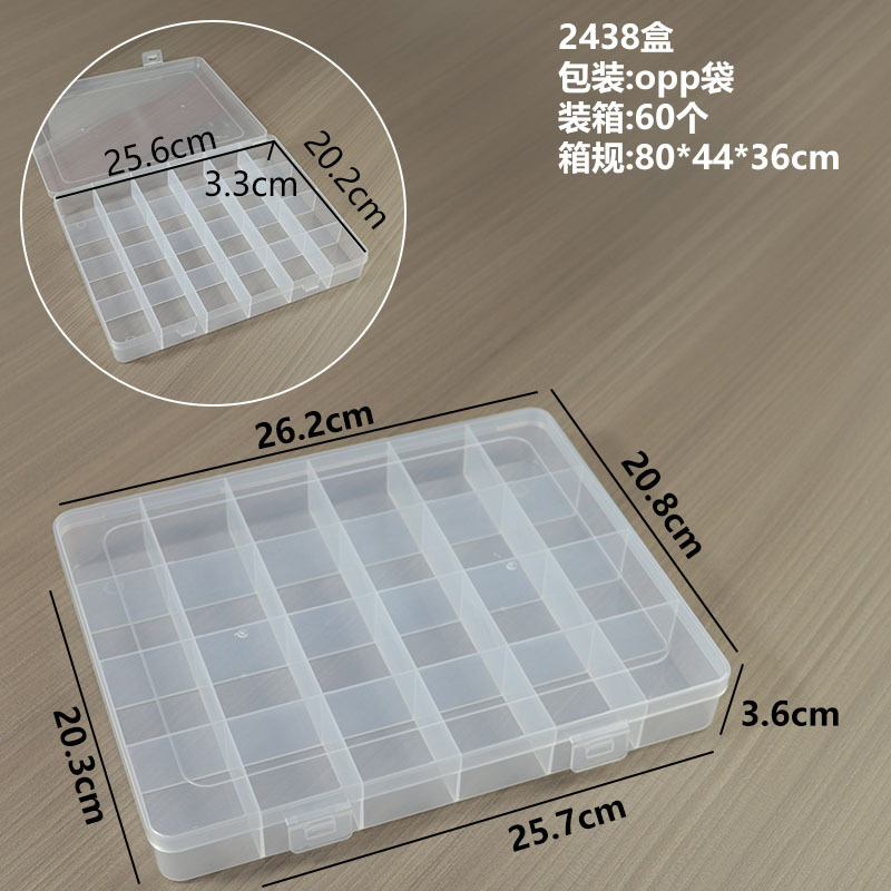 24칸 고정형 PP 투명 플라스틱 보석 상자 낚시 용품 비즈 문구 정리함 하드웨어 부품 보관함