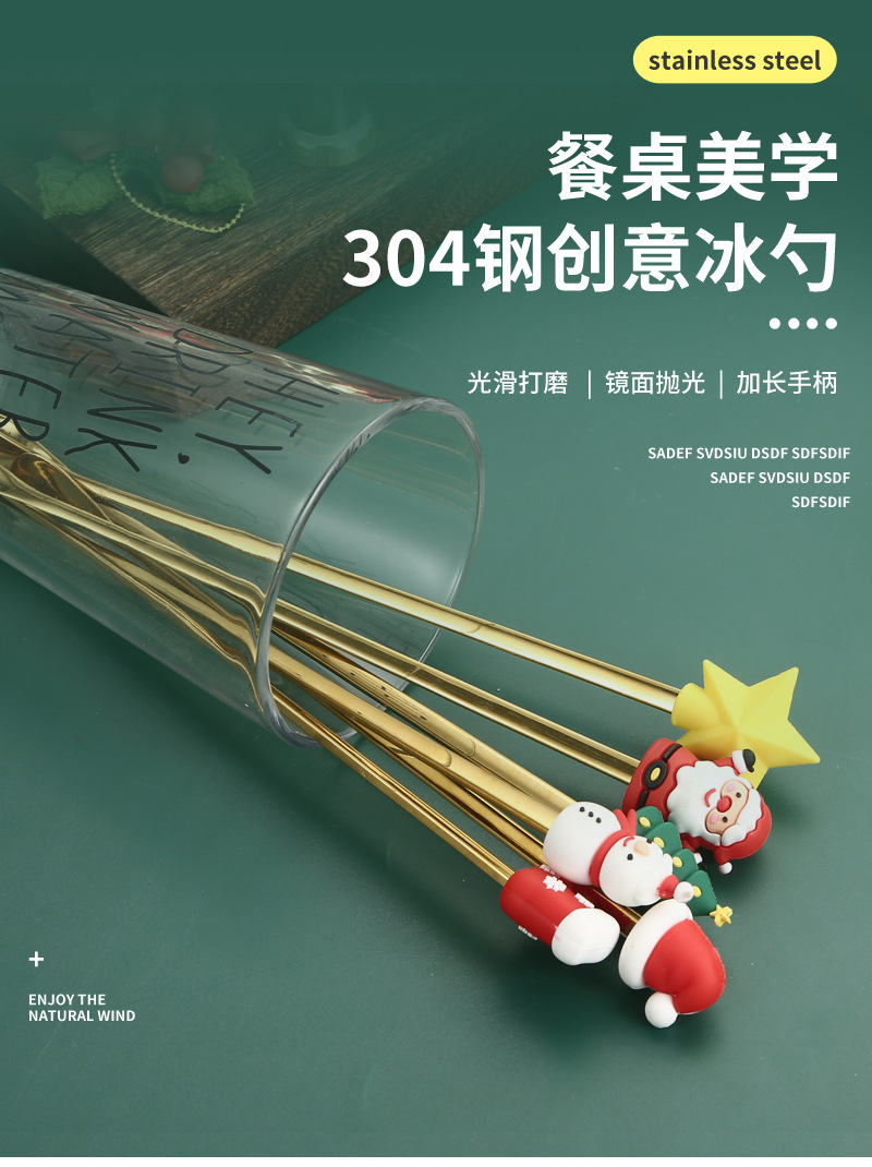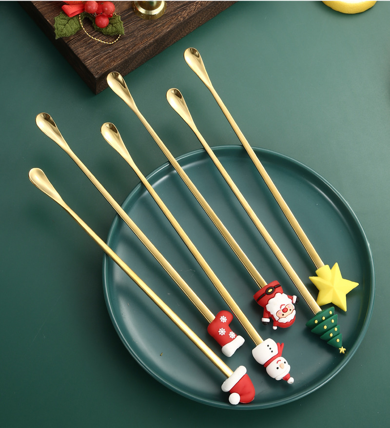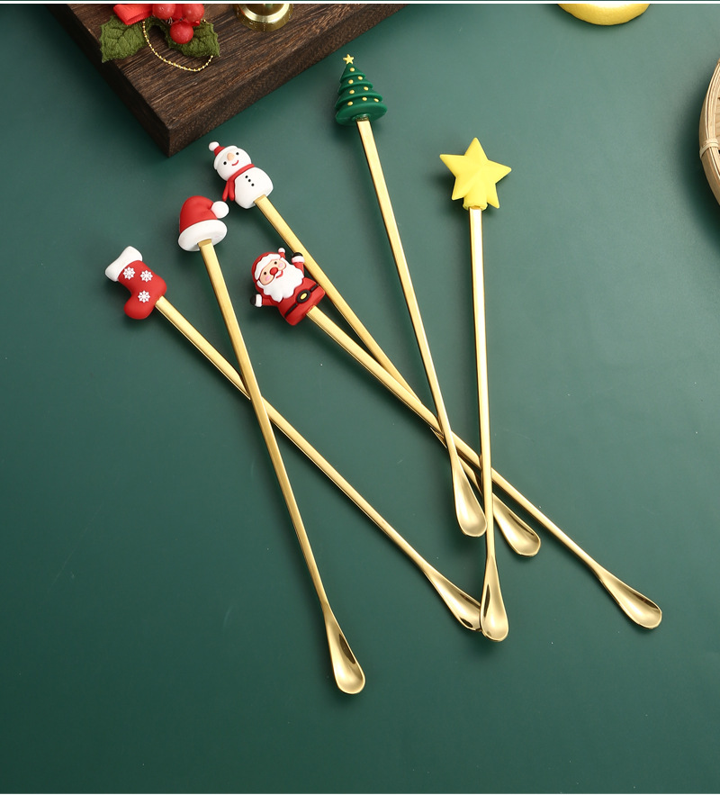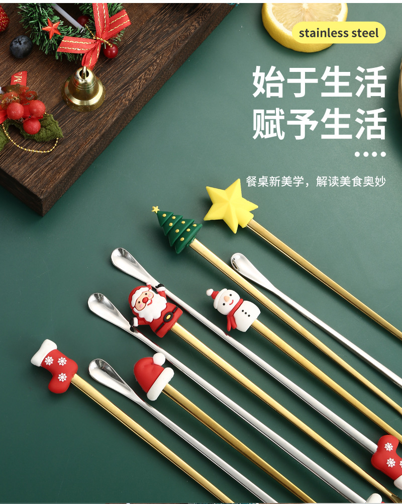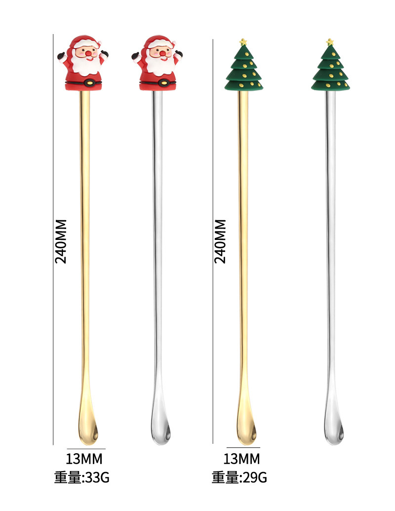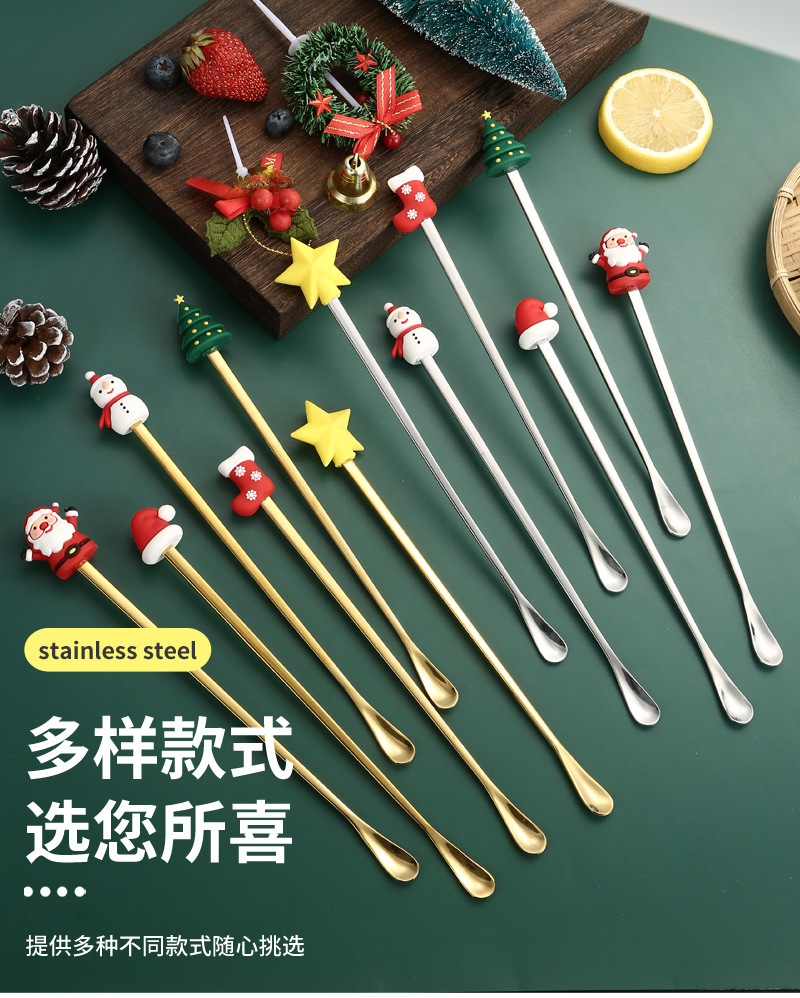 소스 제조 업체 304 스테인레스 스틸 산타 클로스 믹싱 스푼 창조적 인 크리스마스 선물 만화 커피 믹싱 스틱스토어 가기