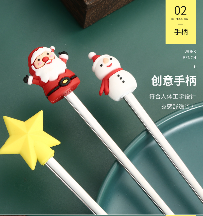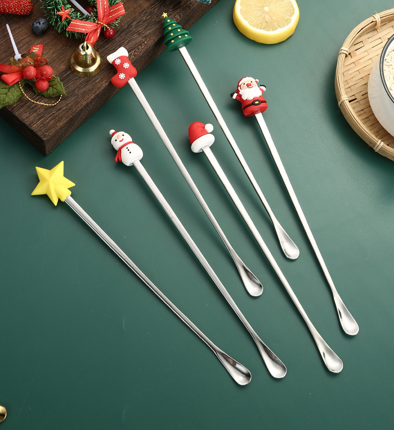 소스 제조 업체 304 스테인레스 스틸 산타 클로스 믹싱 스푼 창조적 인 크리스마스 선물 만화 커피 믹싱 스틱