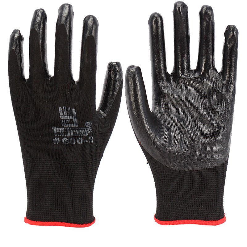 오른손과 왼손 600-3 블랙 나일론 니트릴 장갑 걸기 접착제 디핑 내유성 내마모성 미끄럼 방지 자동차 수리 장갑