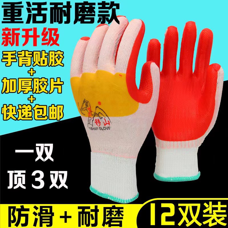 Shiyishan 필름 장갑 플라스틱 접착제 코팅 두꺼운 노동 보호 장갑 고무 장갑 미끄럼 방지 내마모성 고무 사이트 장갑스토어 가기