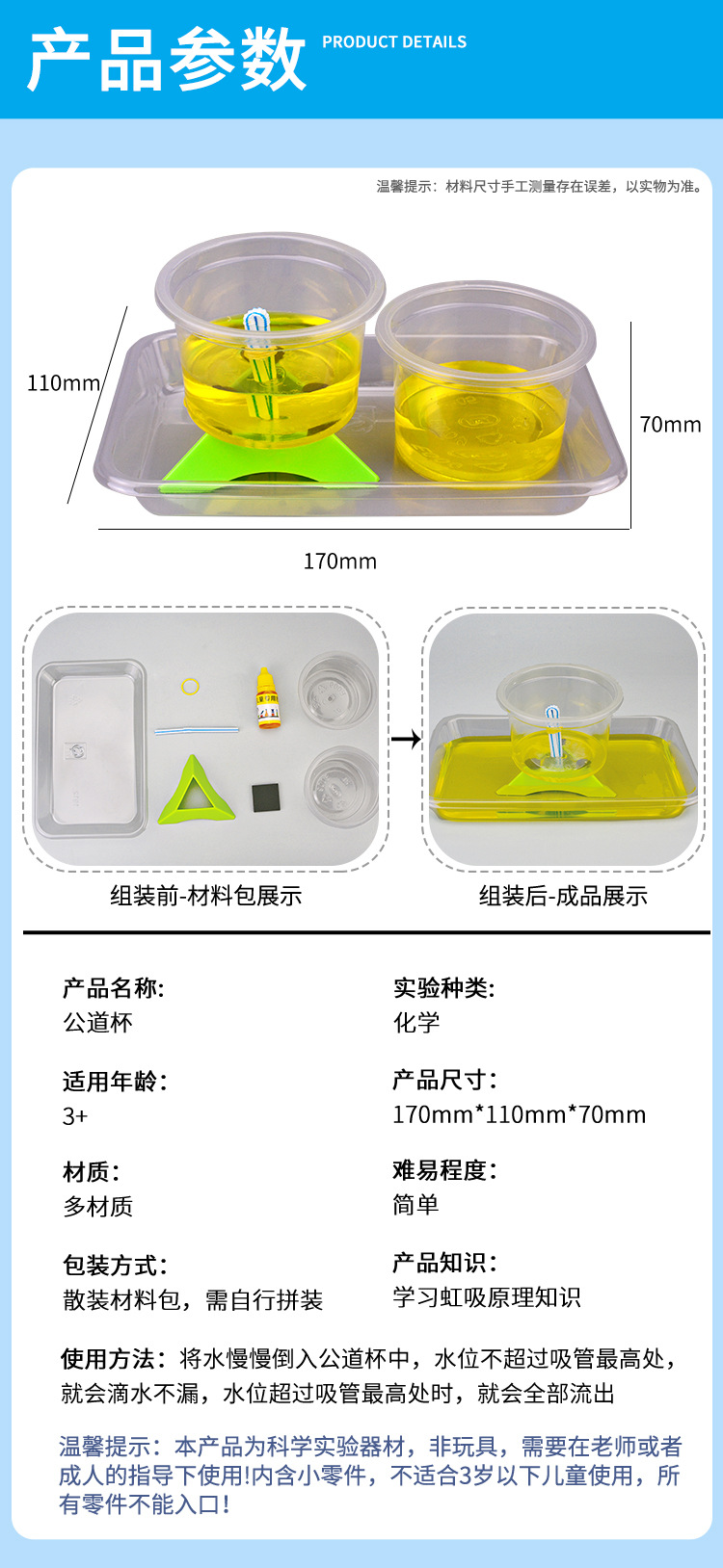 과학 실험 DIY 페어 컵 사이펀 원리 초등학교 학생 장난감 기술 작은 생산 과학 및 교육 프론티어 소재 패키지