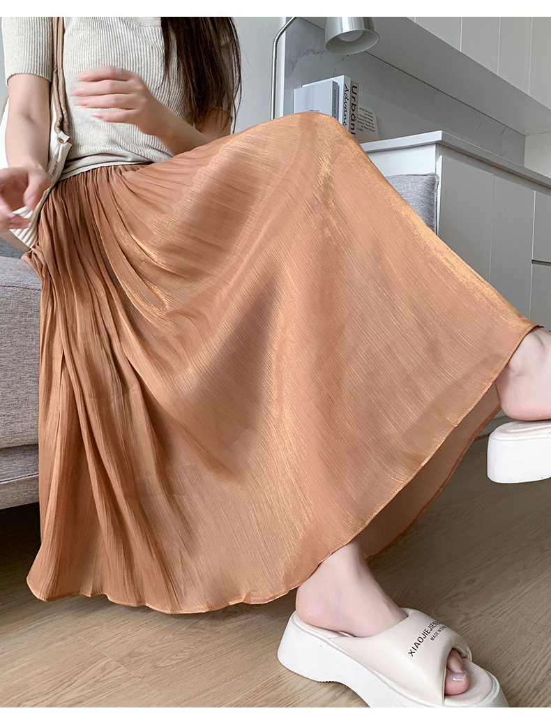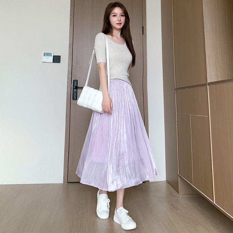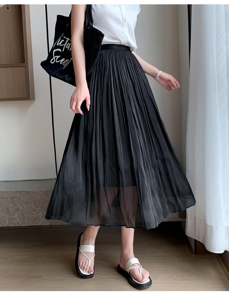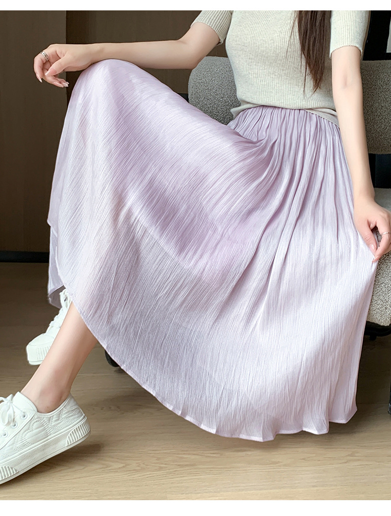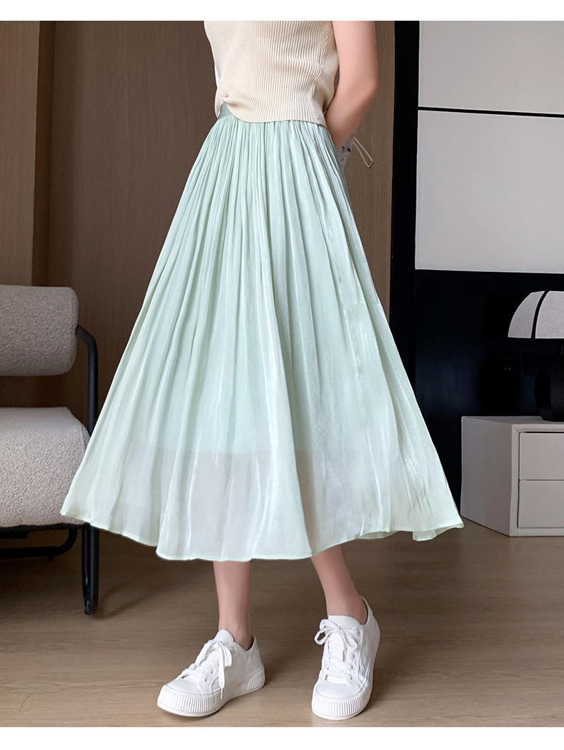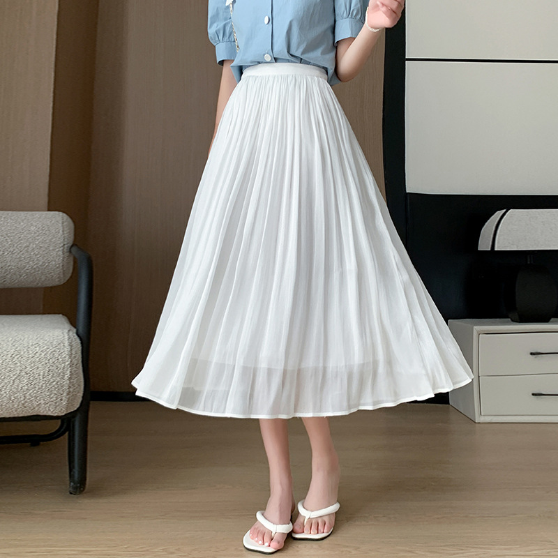 여성용 머서라이즈 스커트, 여름 신상 스타일, 슬림핏, 주름, 드레이프, 우아한 한국 스타일, 하이웨이스트, 신축성 있는 A라인 슬리밍 중간 길이 스커트