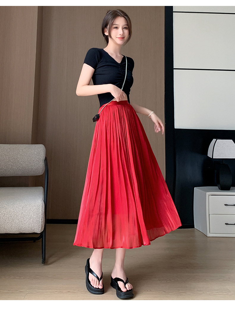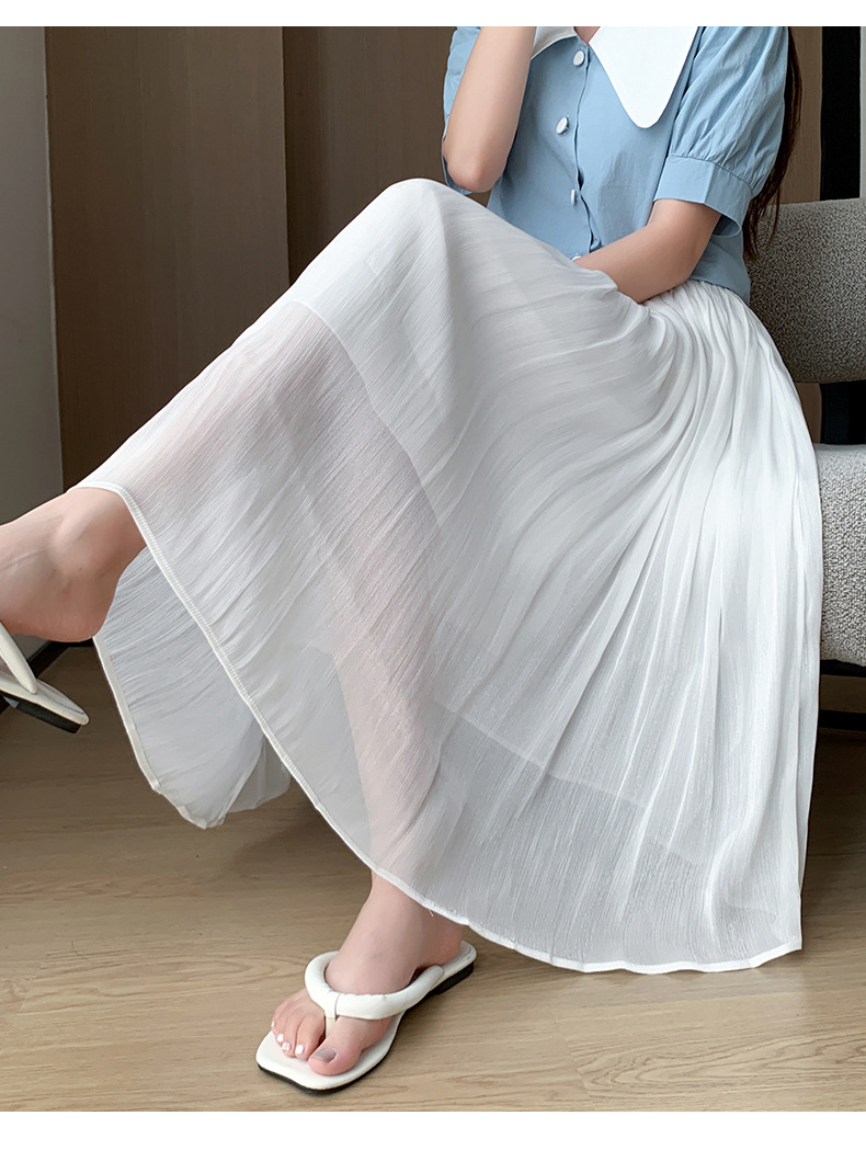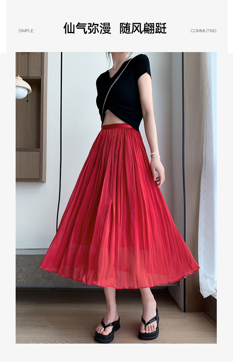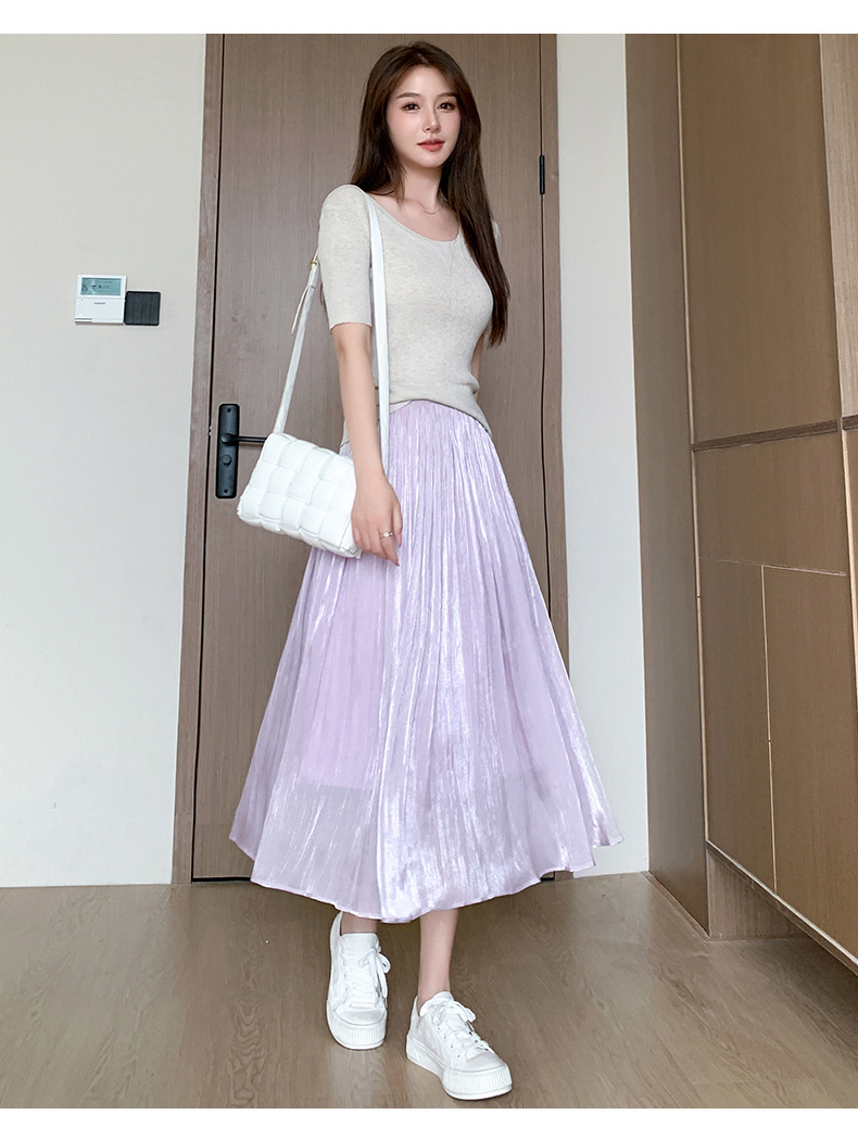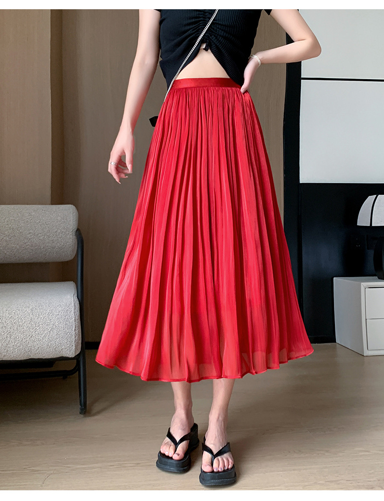여성용 머서라이즈 스커트, 여름 신상 스타일, 슬림핏, 주름, 드레이프, 우아한 한국 스타일, 하이웨이스트, 신축성 있는 A라인 슬리밍 중간 길이 스커트
