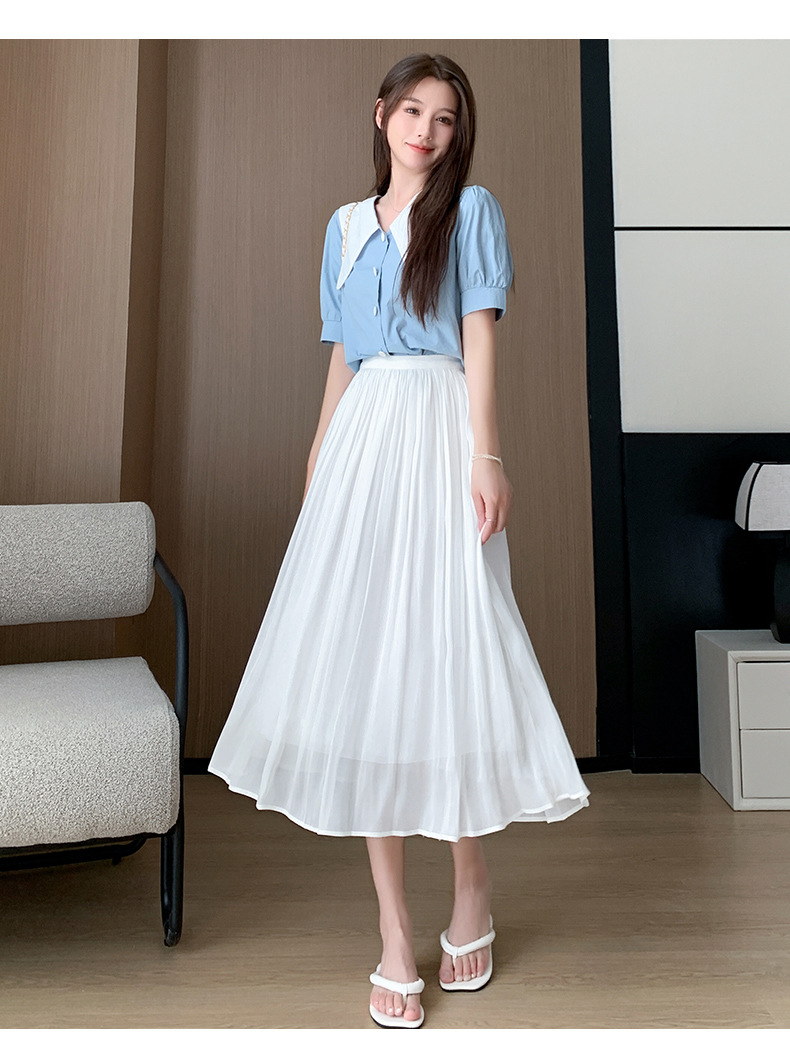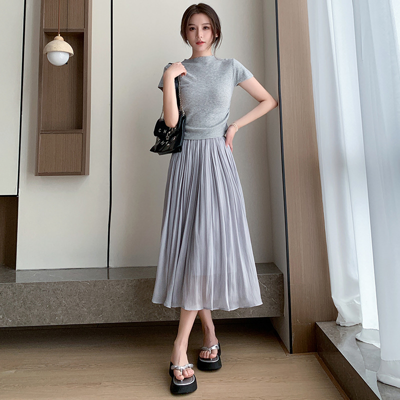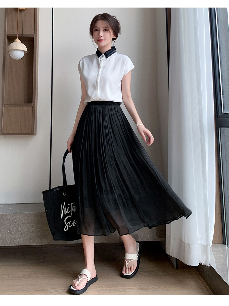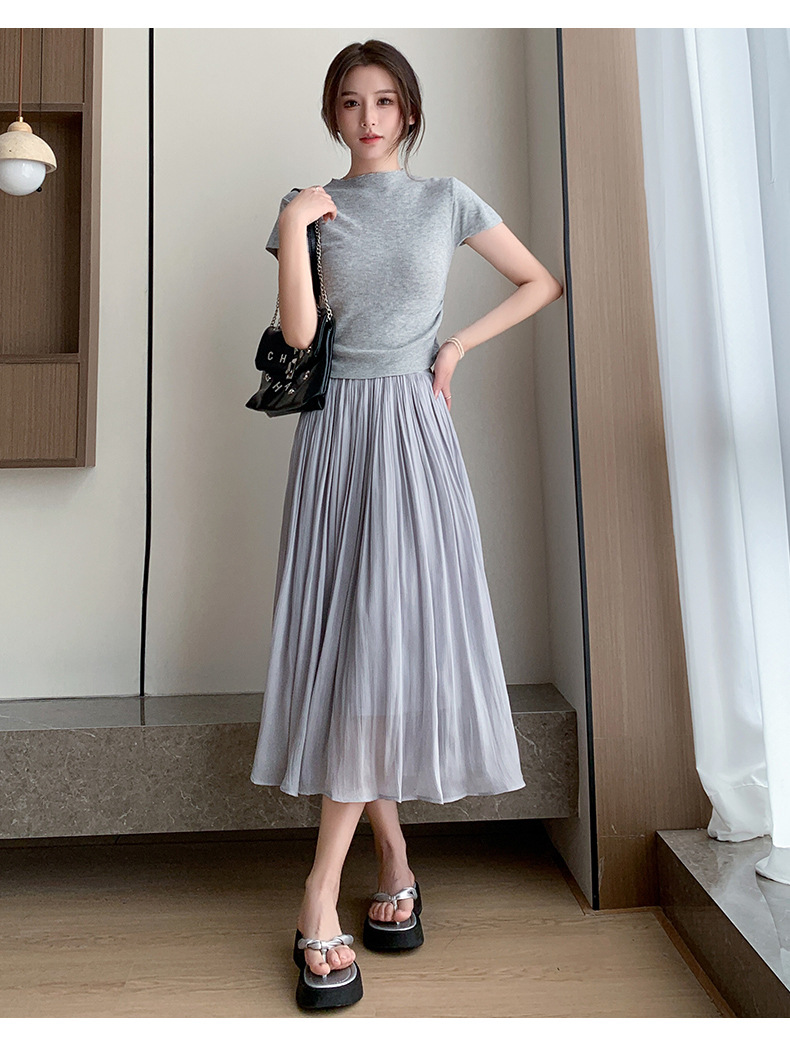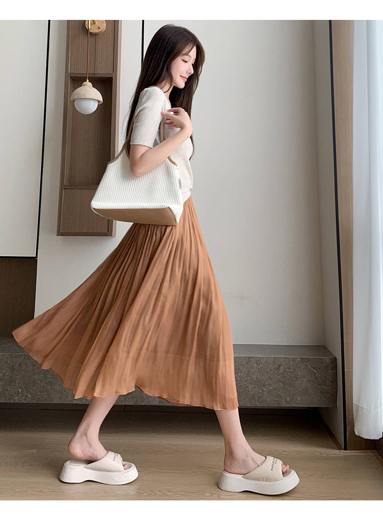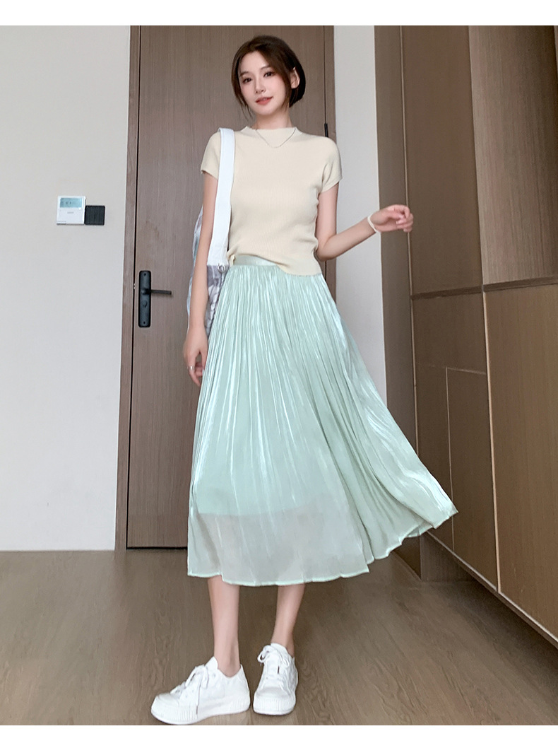 여성용 머서라이즈 스커트, 여름 신상 스타일, 슬림핏, 주름, 드레이프, 우아한 한국 스타일, 하이웨이스트, 신축성 있는 A라인 슬리밍 중간 길이 스커트
