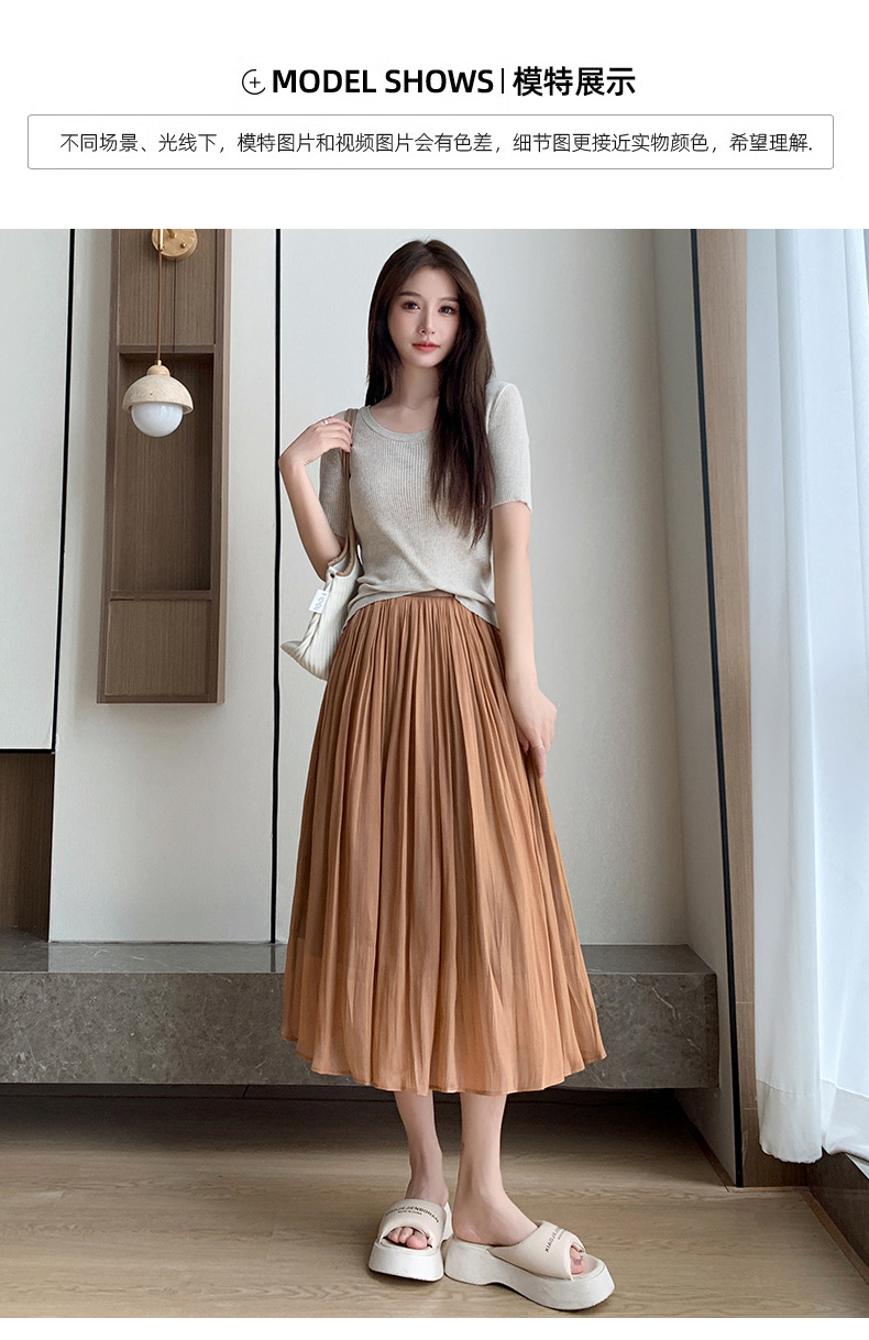 여성용 머서라이즈 스커트, 여름 신상 스타일, 슬림핏, 주름, 드레이프, 우아한 한국 스타일, 하이웨이스트, 신축성 있는 A라인 슬리밍 중간 길이 스커트스토어 가기