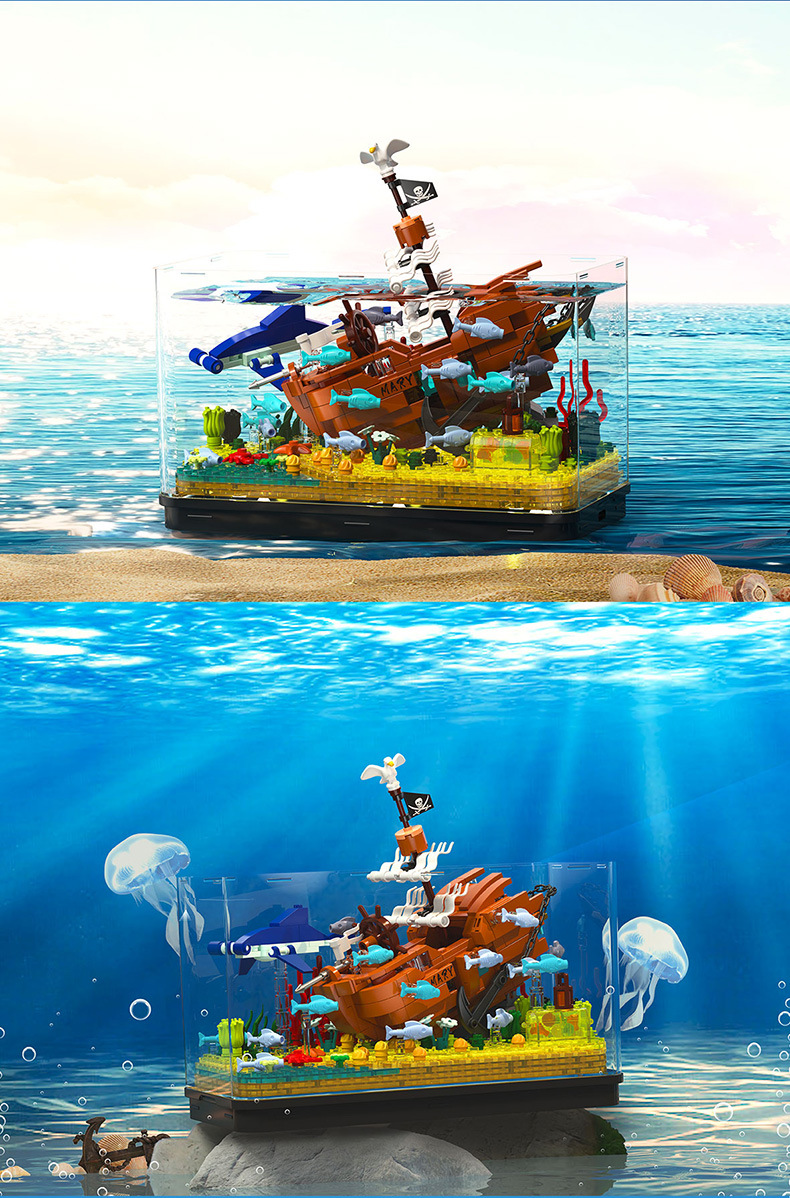 Zhegao 바다 어항 크리 에이 티브 DIY 데스크탑 장식품 조립 어린이 장난감 빌딩 블록 모델 물 662002