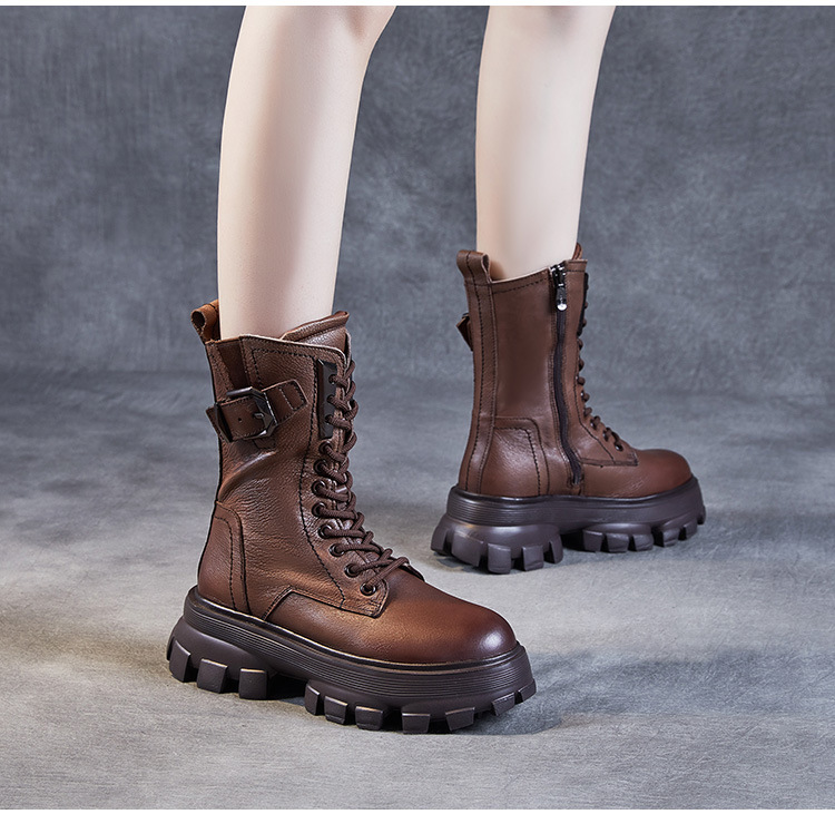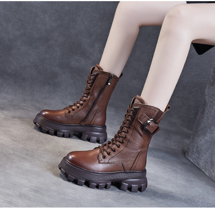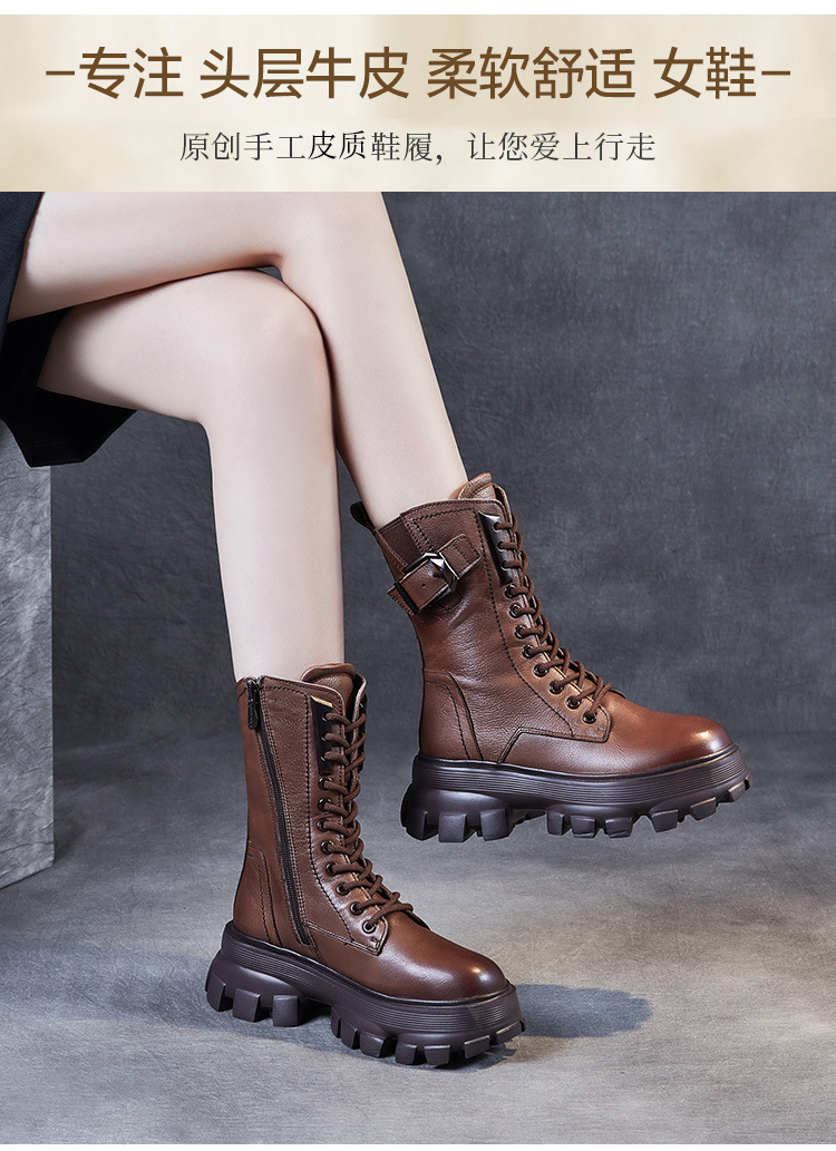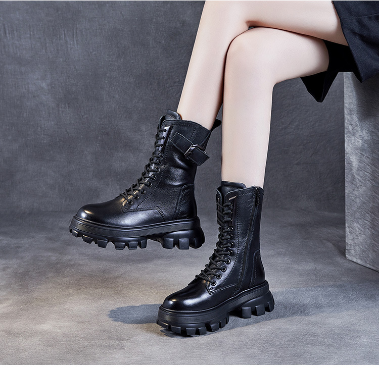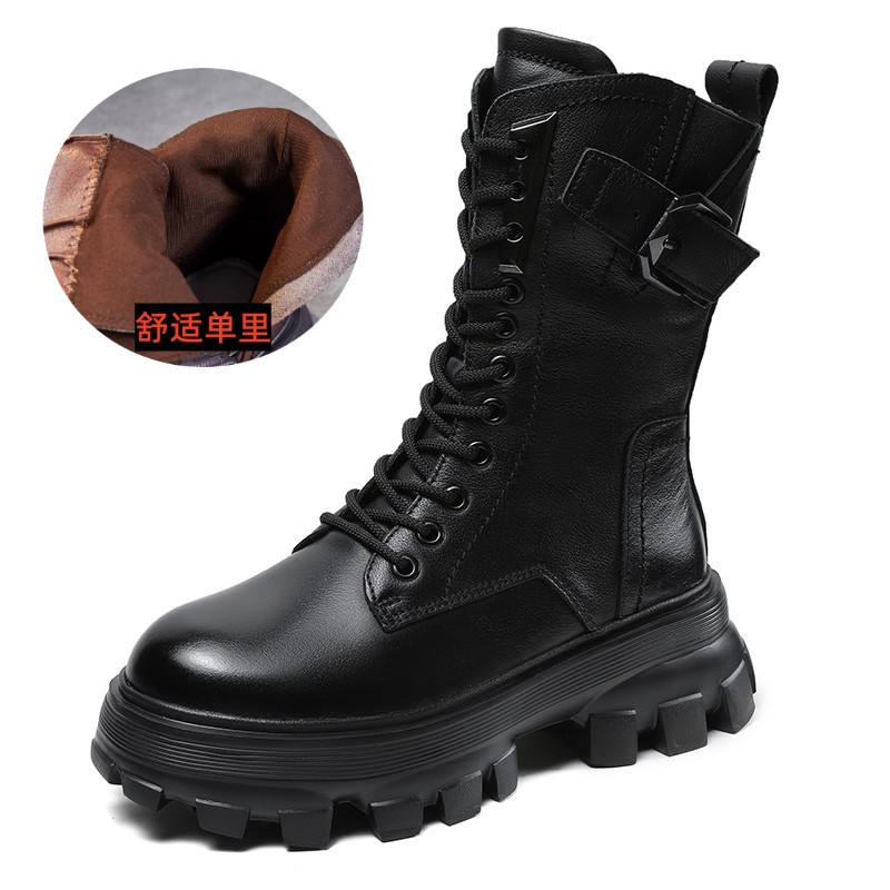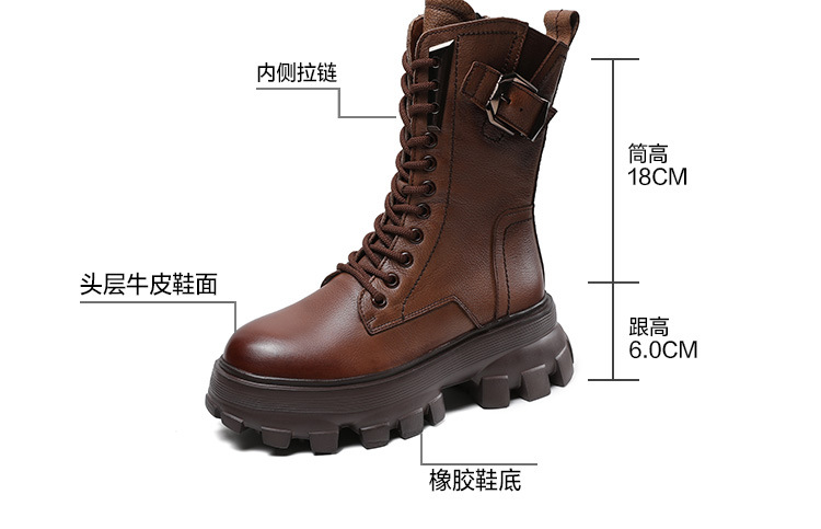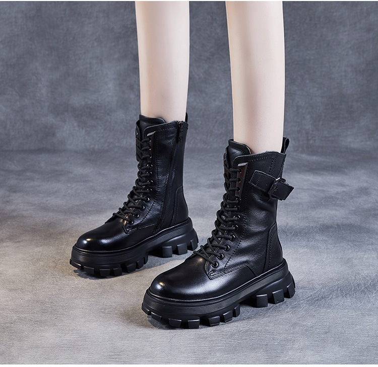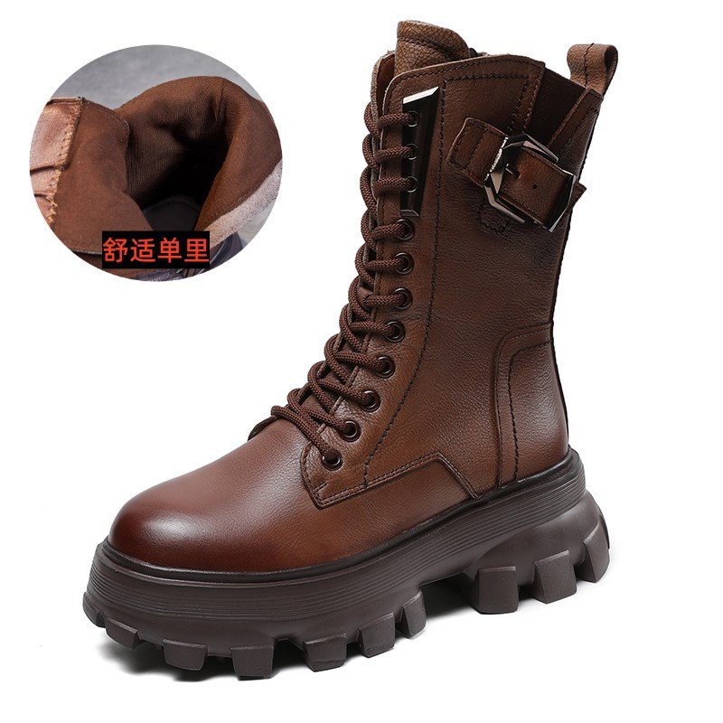 1층 소가죽 2025 가을 겨울 여성 신발 캐주얼 두꺼운 밑창 플랫폼 신발 부츠 롱부츠 여성 마틴 부츠
