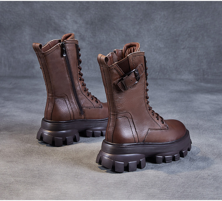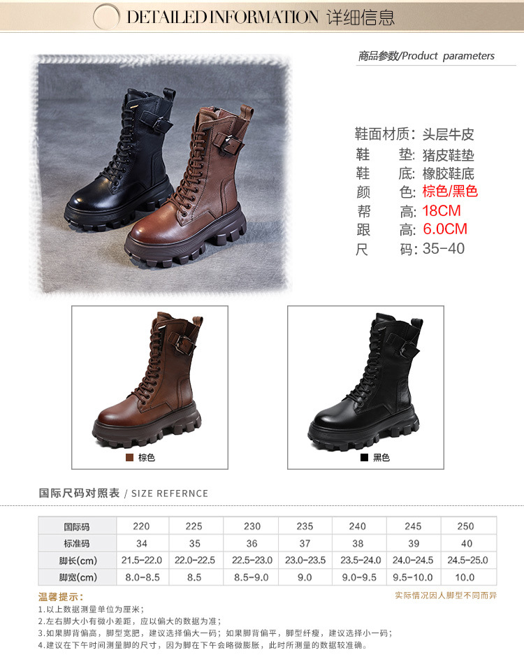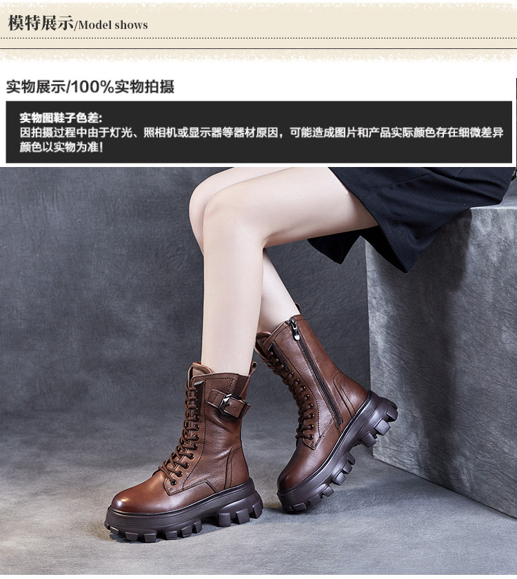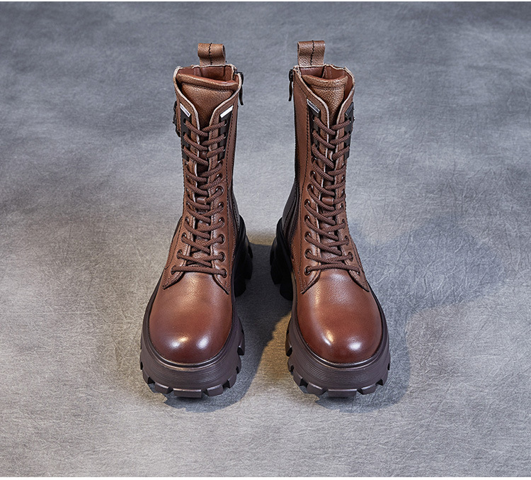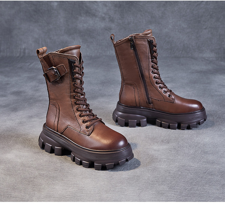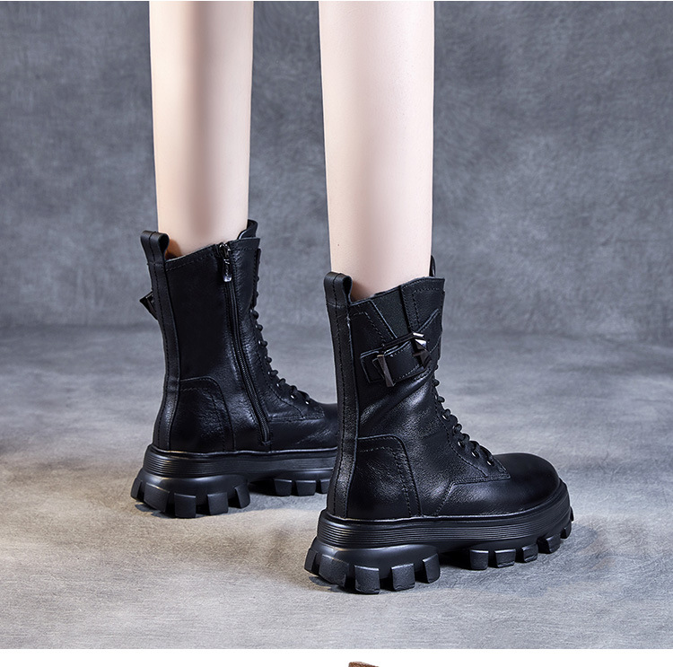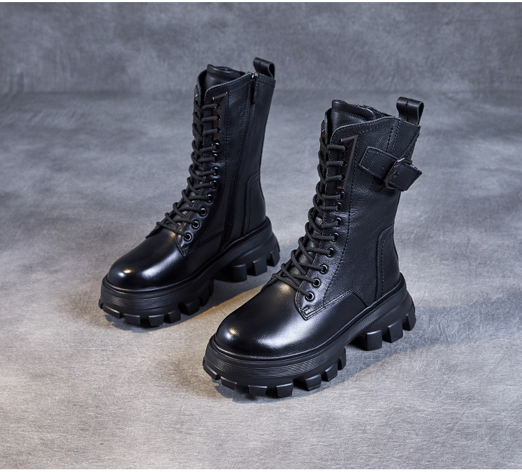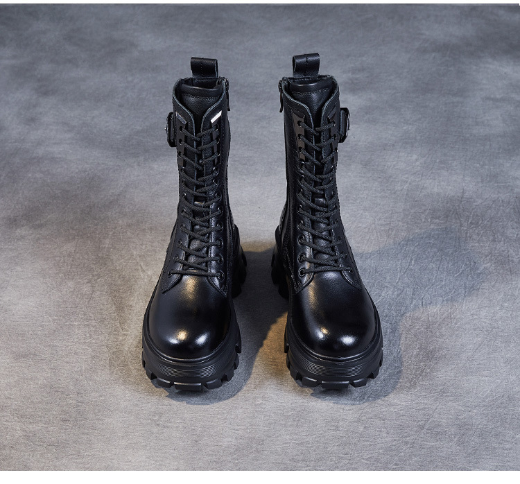 1층 소가죽 2025 가을 겨울 여성 신발 캐주얼 두꺼운 밑창 플랫폼 신발 부츠 롱부츠 여성 마틴 부츠