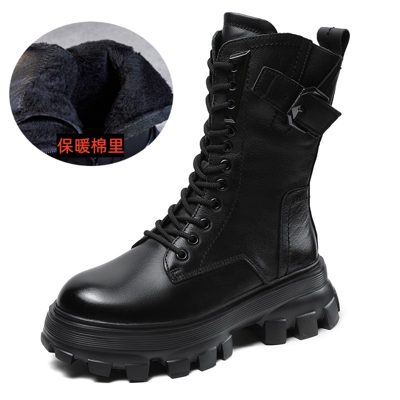 1층 소가죽 2025 가을 겨울 여성 신발 캐주얼 두꺼운 밑창 플랫폼 신발 부츠 롱부츠 여성 마틴 부츠스토어 가기