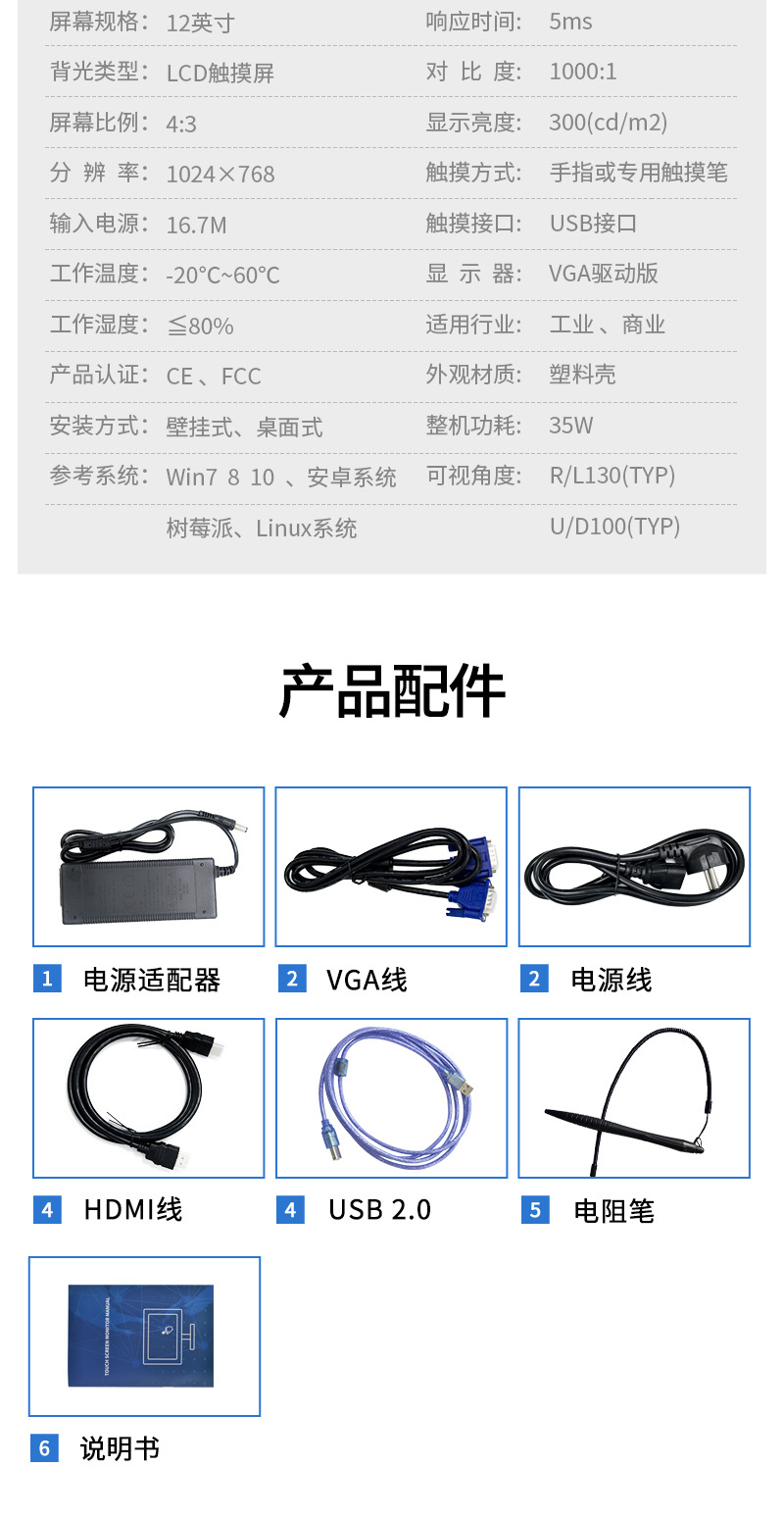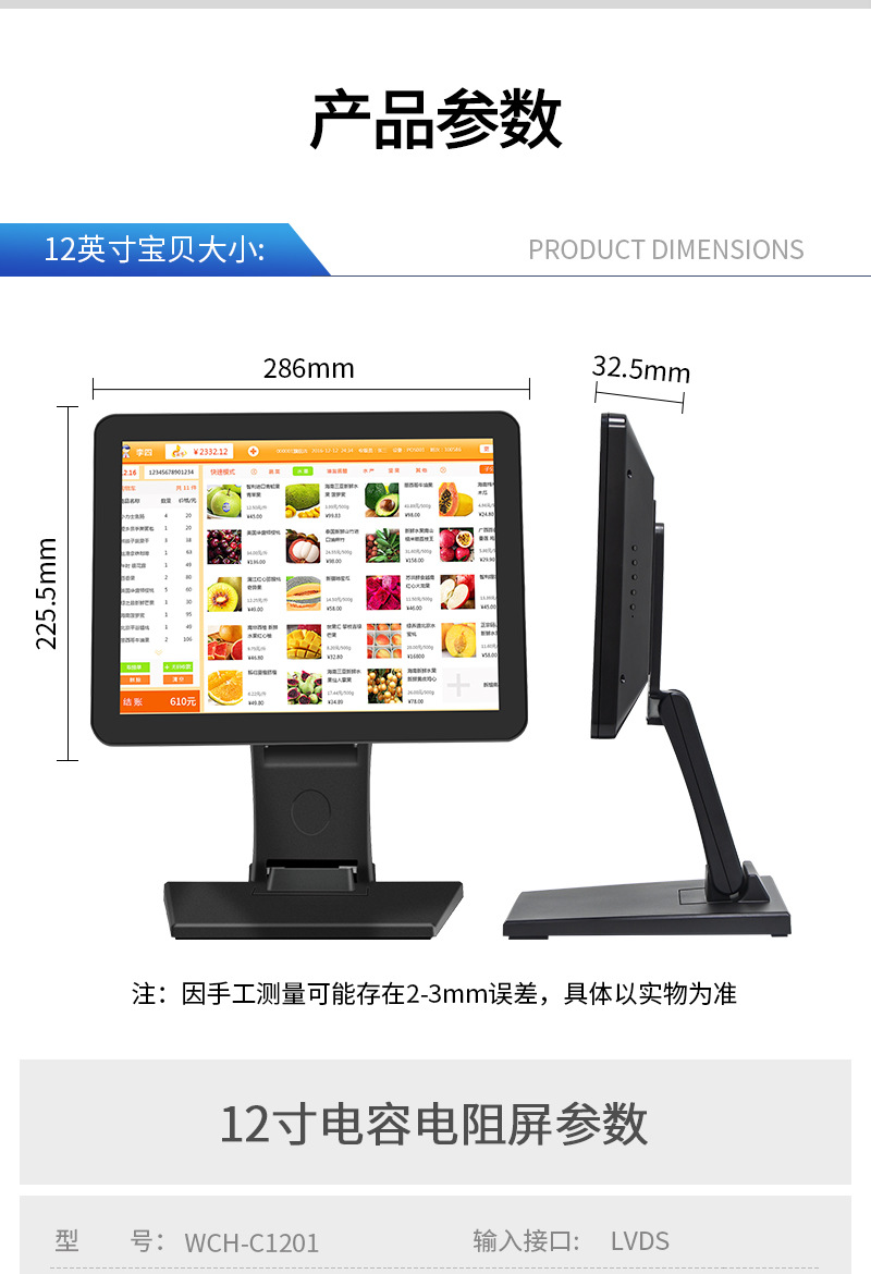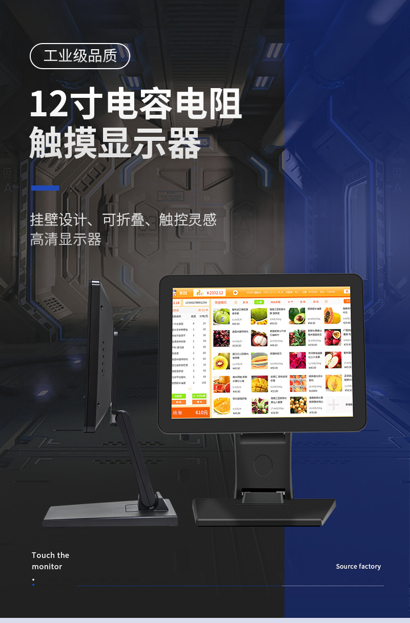 5 레인보우 LCD 터치 디스플레이 편의점 특수 12 인치 컴퓨터 HD 저항 접이식 디스플레이