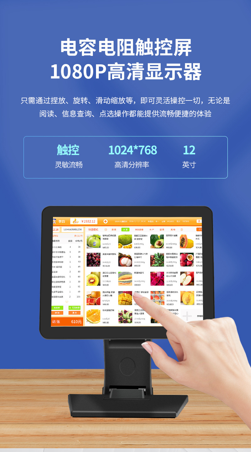 5 레인보우 LCD 터치 디스플레이 편의점 특수 12 인치 컴퓨터 HD 저항 접이식 디스플레이스토어 가기