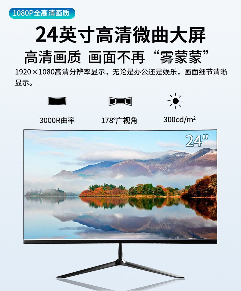 파이브 레인보우 23.8 "게임 E 스포츠 경계선없는 LCD 디스플레이 곡선 직선 홈 오피스 컴퓨터 디스플레이