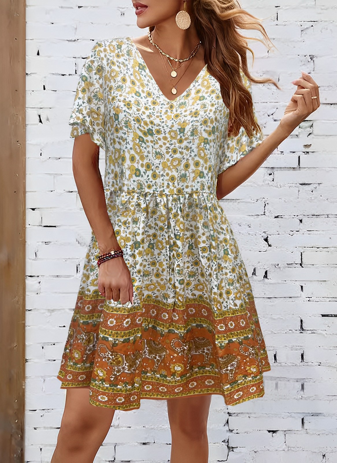2023 유럽과 미국의 국경 아마존 새로운 패션 대외 무역 여성 V 넥 느슨한 인쇄 주름 원피스스토어 가기