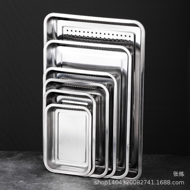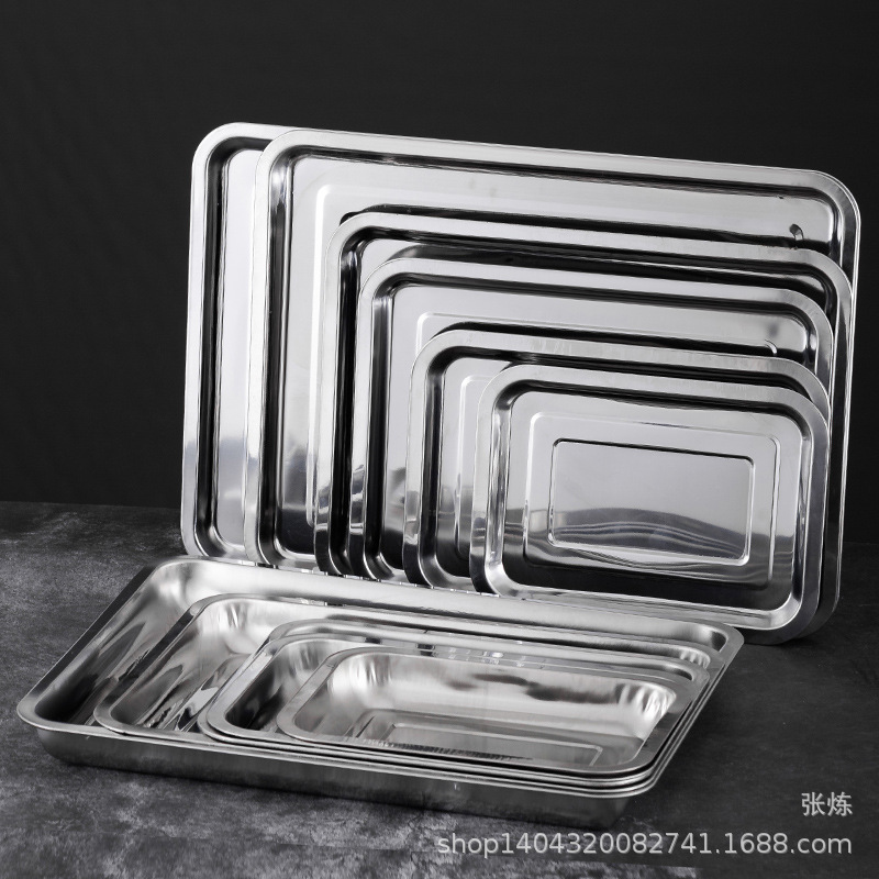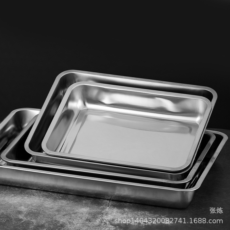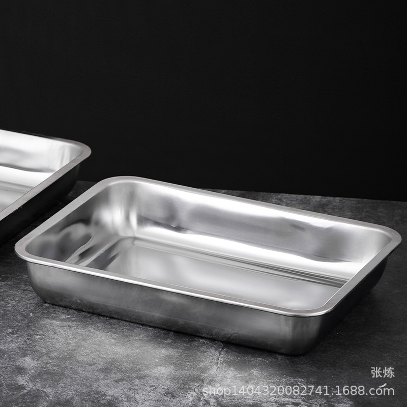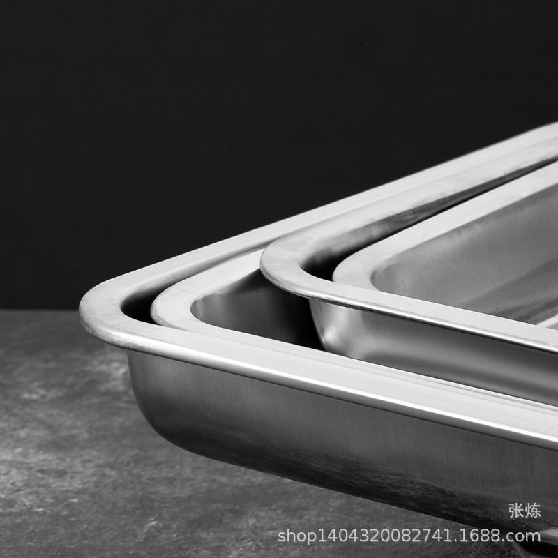 스테인레스 스틸 사각 접시 304 깊은 찐 밥 접시 두꺼운 직사각형 바베큐 구운 생선 접시 펀치 차 연못 사각 접시스토어 가기