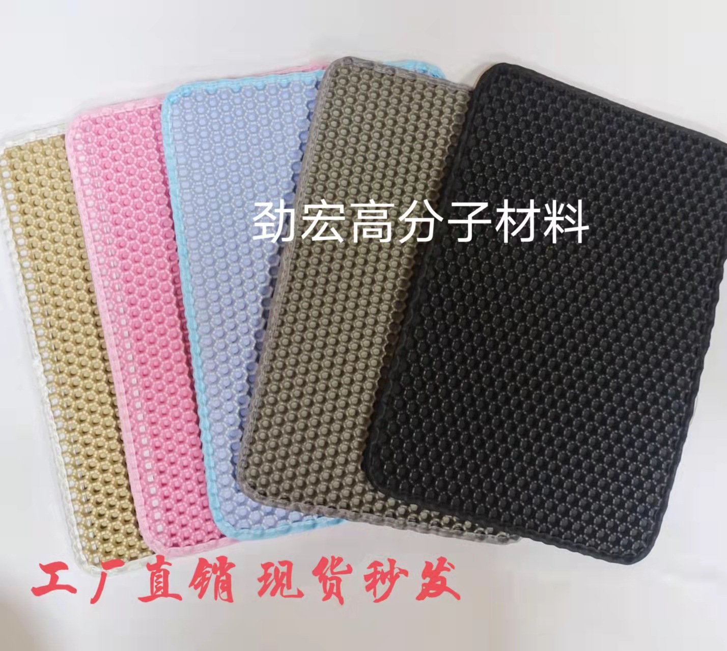 产品功能:适用多种类的猫砂,上层通孔材料,猫砂可轻易通过,下层 防水材质,猫砂、小便等脏物可聚 集于此。猫砂垫为上下双层设计:上层采用六角形的洞孔凹凸设计,除了让猫砂落入后不再溅出外,圆球型的柔滑触感也可以避免猫咪抓坏,下层垫密封专门存放猫砂,底部设计成规则性的圆孔,有效防滑。