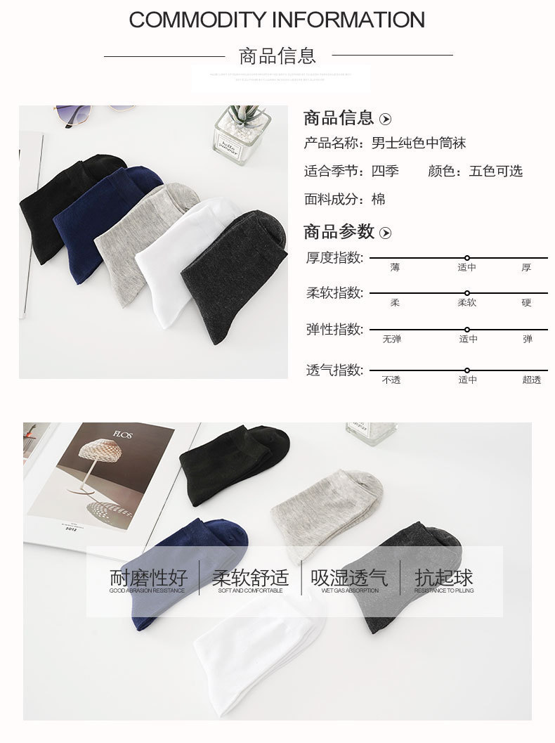 화이트 양말 남성 미드 튜브 봄과 가을 비즈니스 양말 통기성 퓨어 코튼 가죽 신발 퓨어 블랙 원피스 캐주얼 스포츠 스타킹