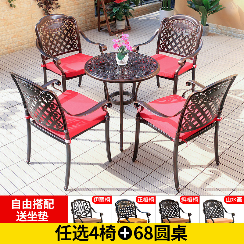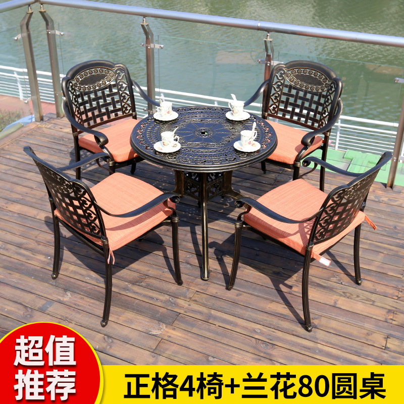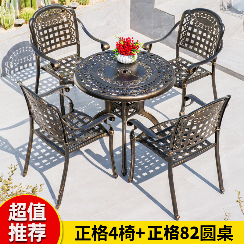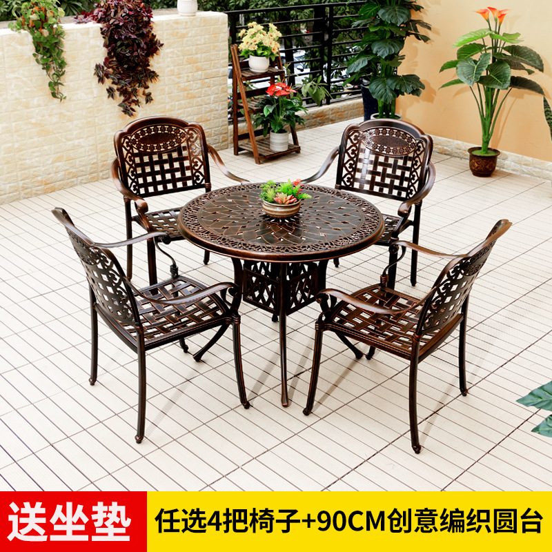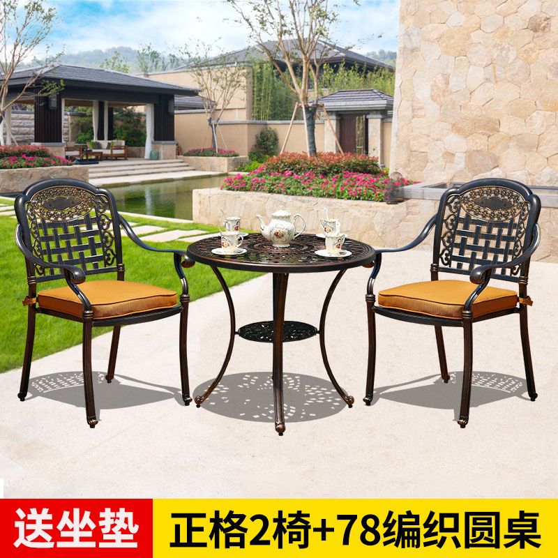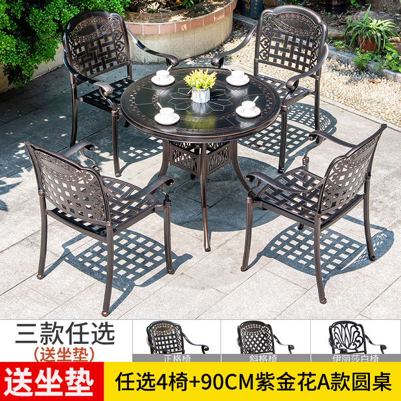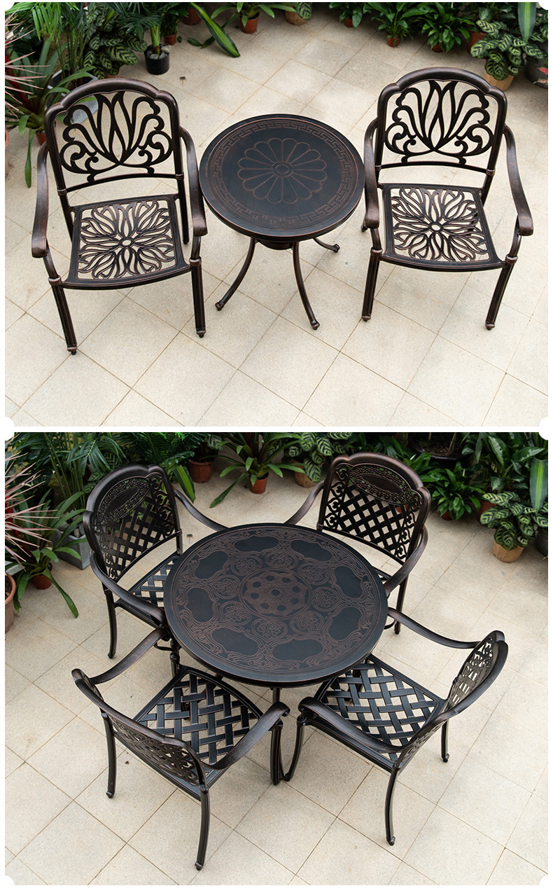 야외 테이블과 의자 캐스트 알루미늄 발코니 안뜰 레저 3-5 종 세트 야외 다리미 방수 자외선 차단제 테이블과 의자 조합