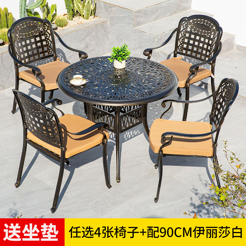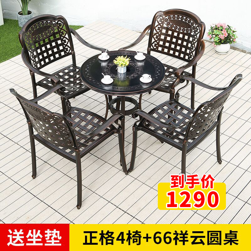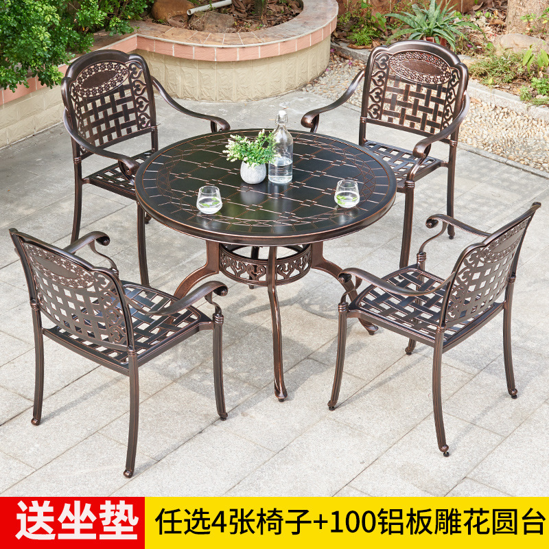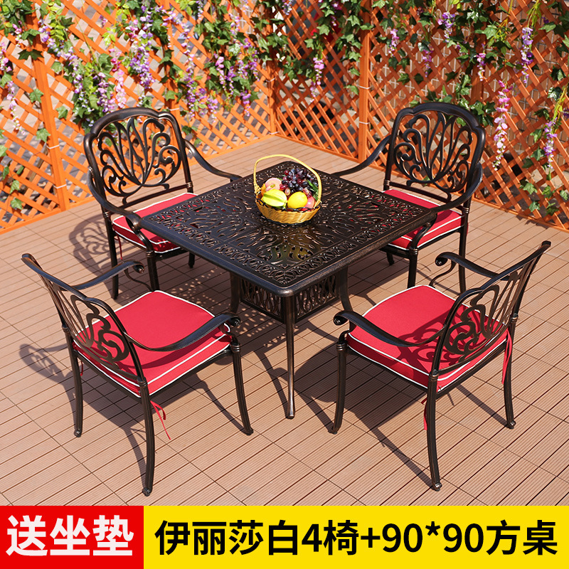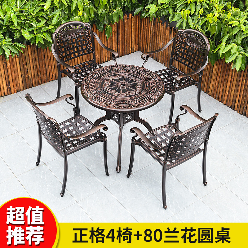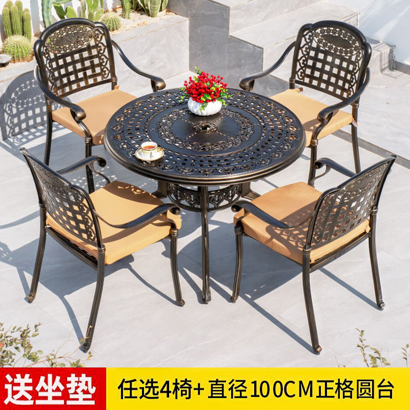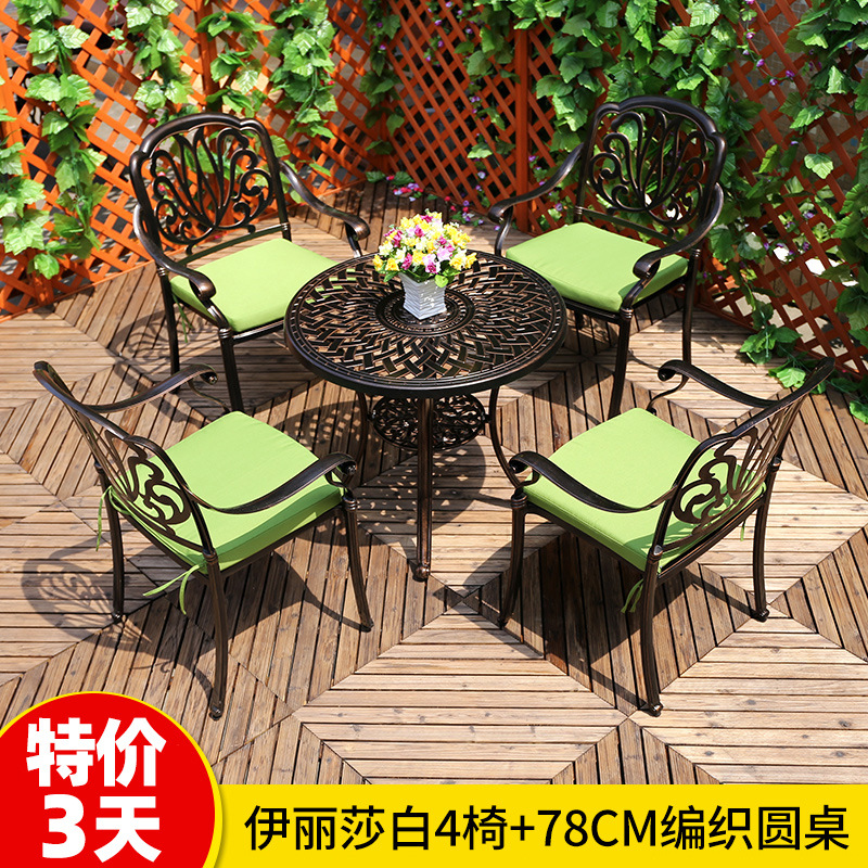 야외 테이블과 의자 캐스트 알루미늄 발코니 안뜰 레저 3-5 종 세트 야외 다리미 방수 자외선 차단제 테이블과 의자 조합