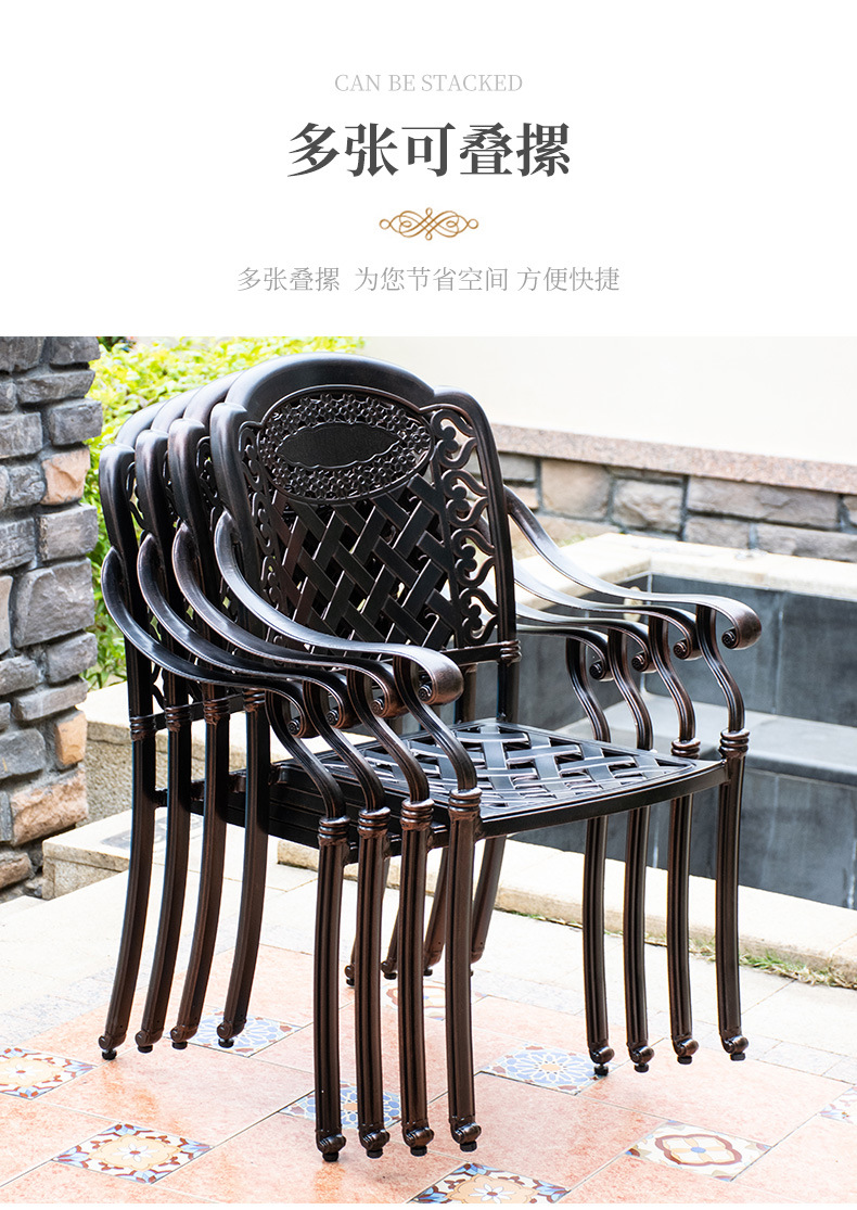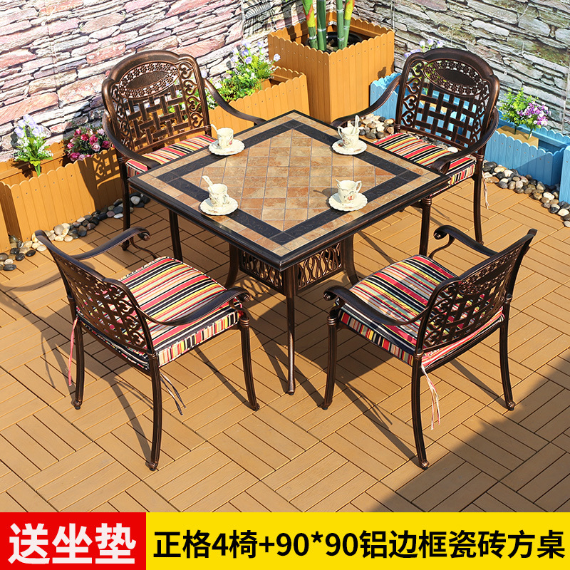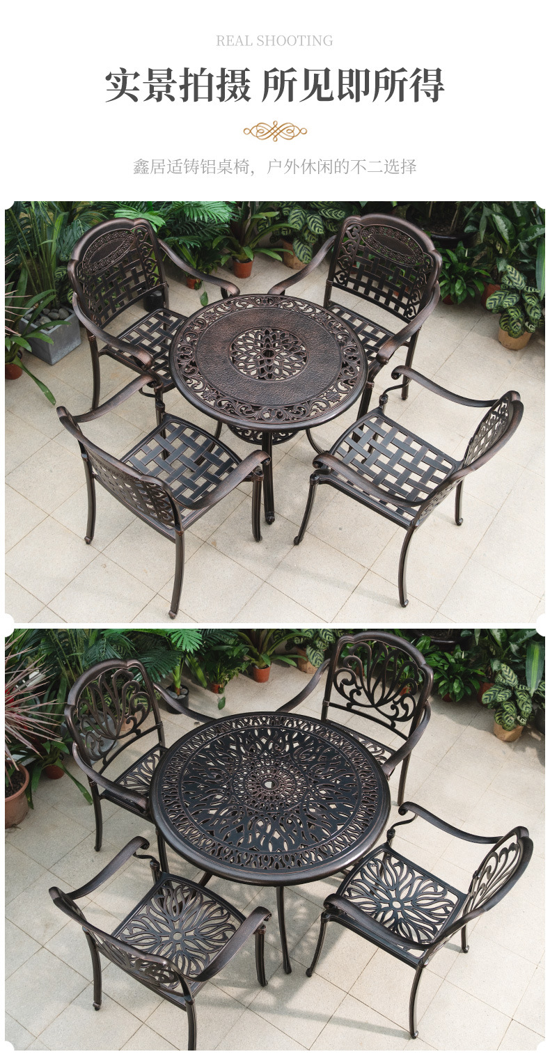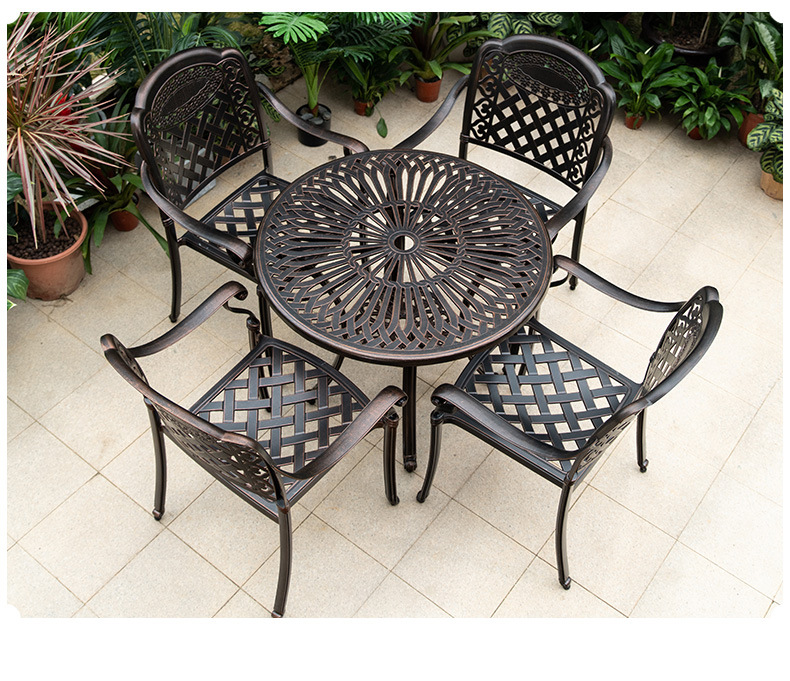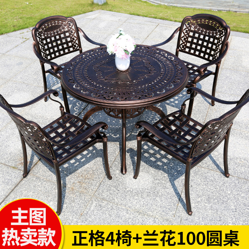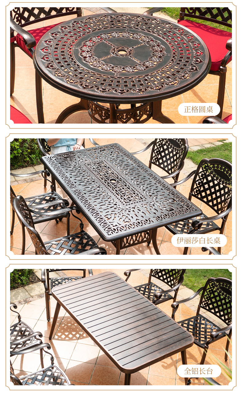야외 테이블과 의자 캐스트 알루미늄 발코니 안뜰 레저 3-5 종 세트 야외 다리미 방수 자외선 차단제 테이블과 의자 조합