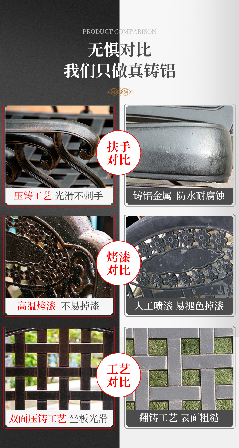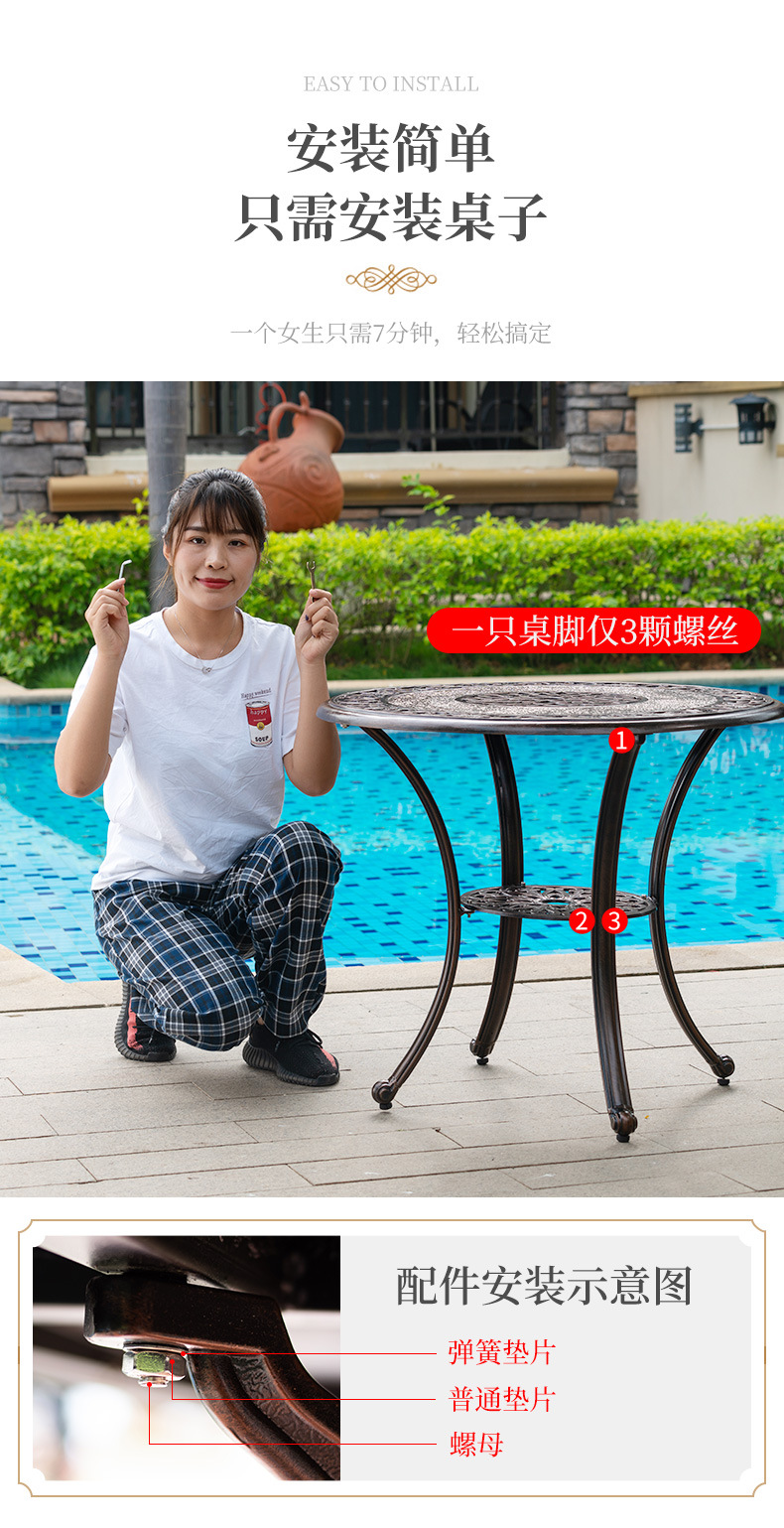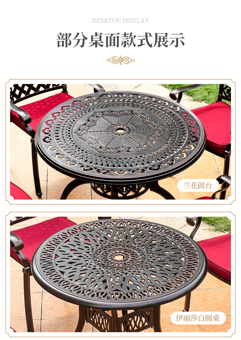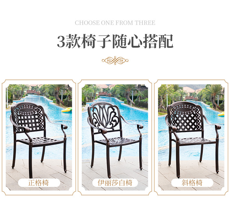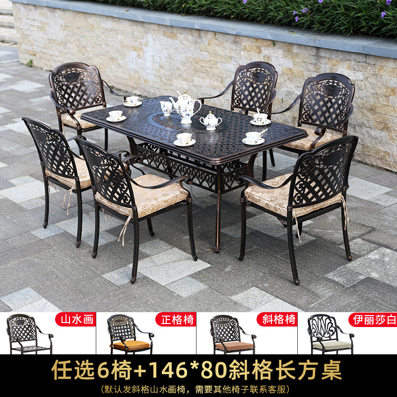 야외 테이블과 의자 캐스트 알루미늄 발코니 안뜰 레저 3-5 종 세트 야외 다리미 방수 자외선 차단제 테이블과 의자 조합