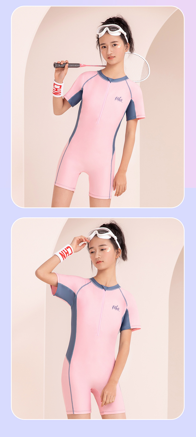 학생 수영복 여름 수영모 소녀용 원피스 속건 수영복 중대형 어린이 훈련 수업 전문 수영복 스포츠 스타일