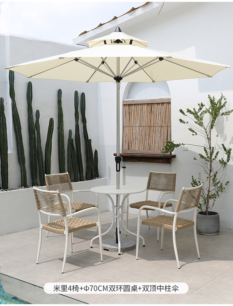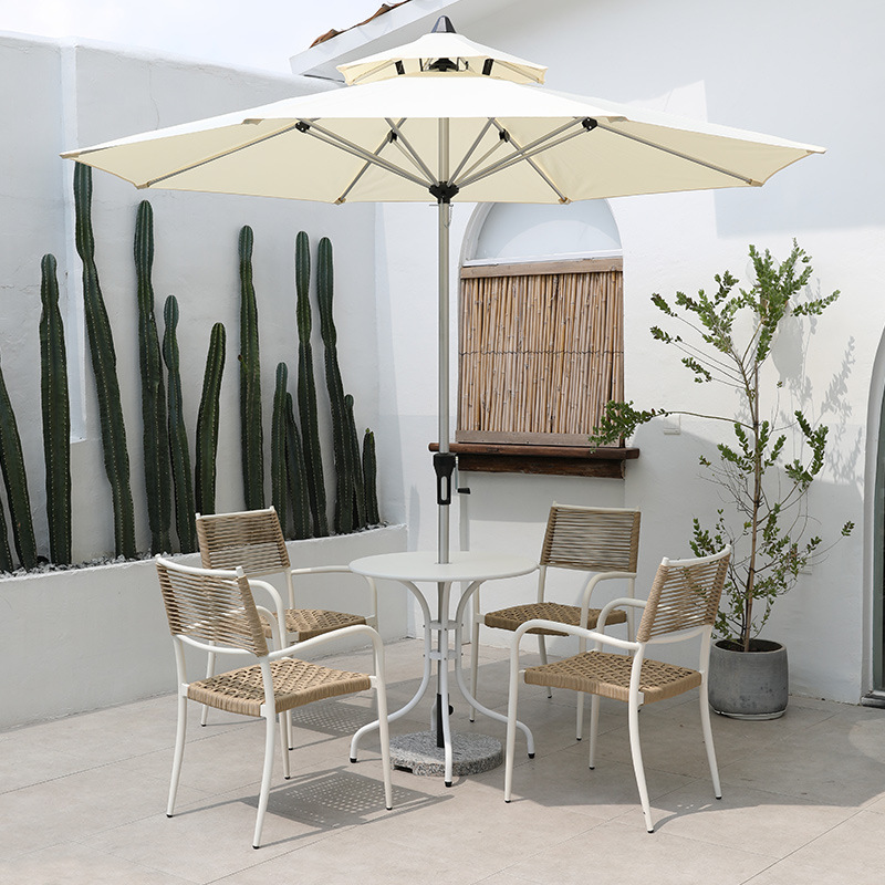 • 2.7 미터 알루미늄 더블 탑 원형 우산 + 의자 4 개 + 지름 70cm 더블 링 원형 테이블