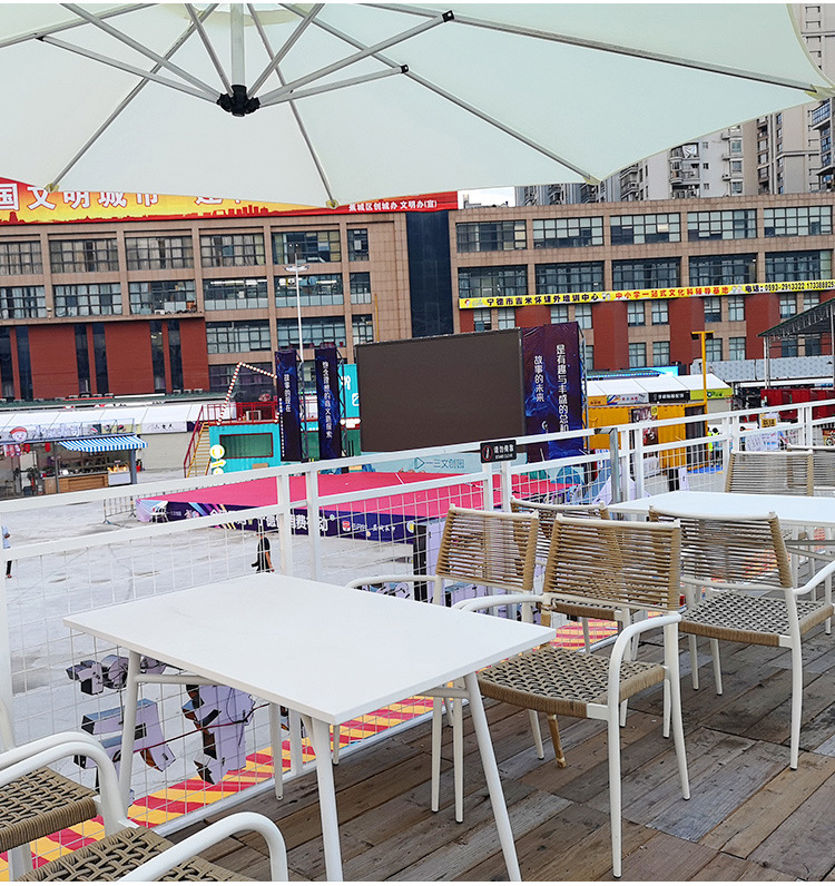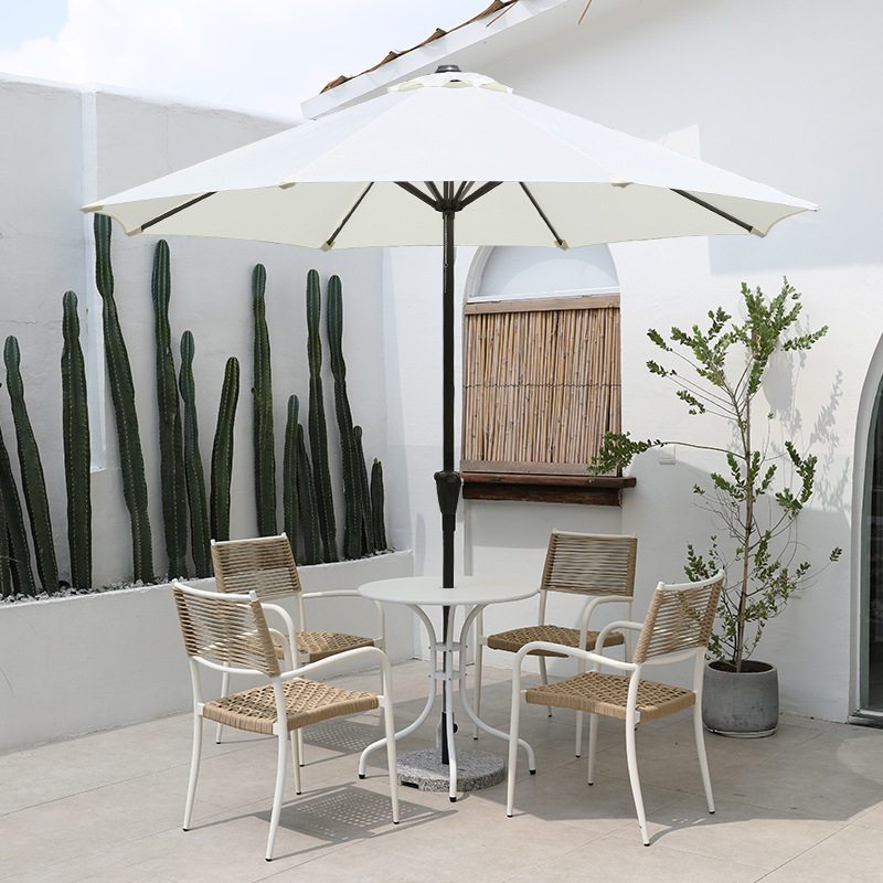 • 2.7 m 철제 싱글 탑 원형 우산 + 의자 4 개 + 직경 70cm 이중 링 원형 테이블