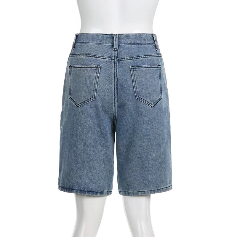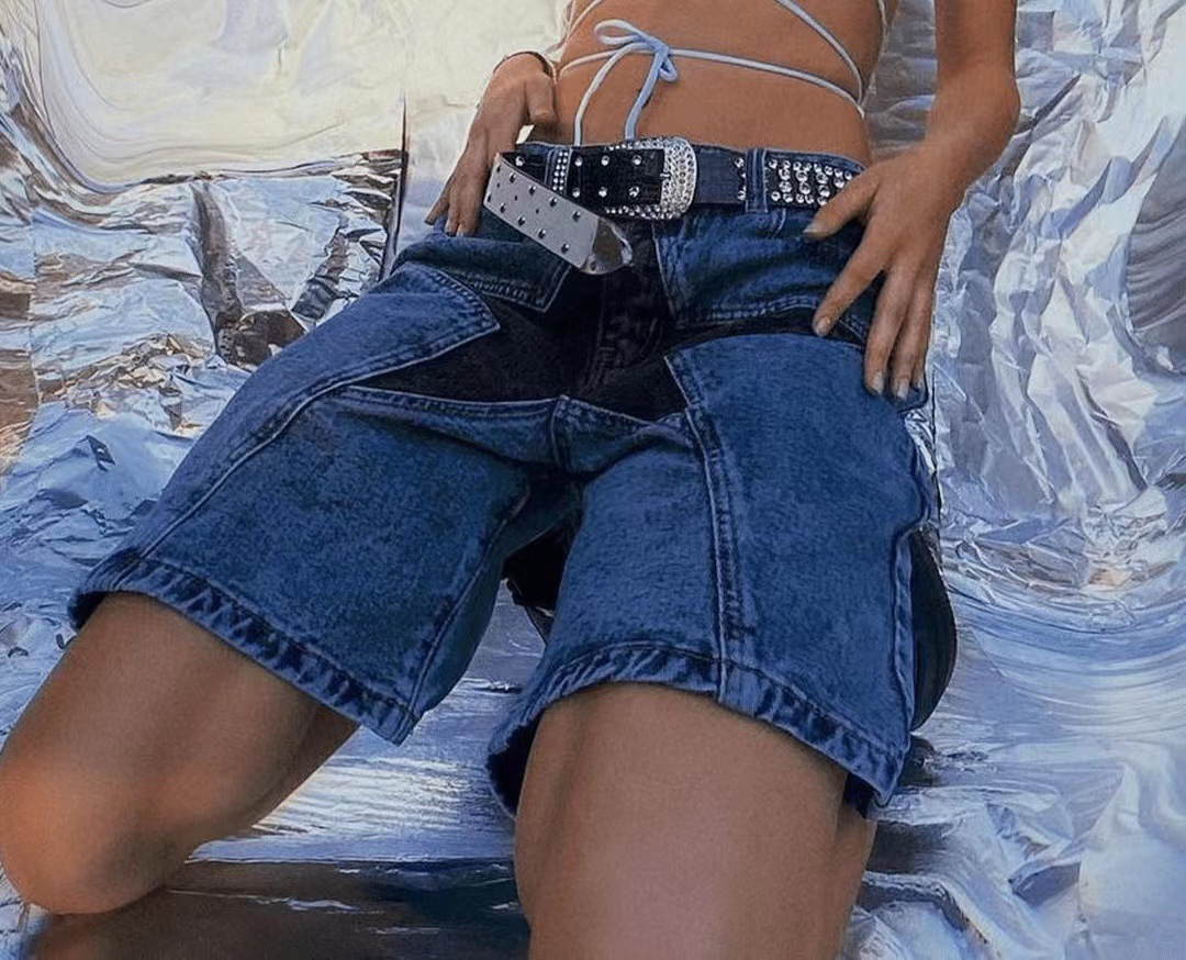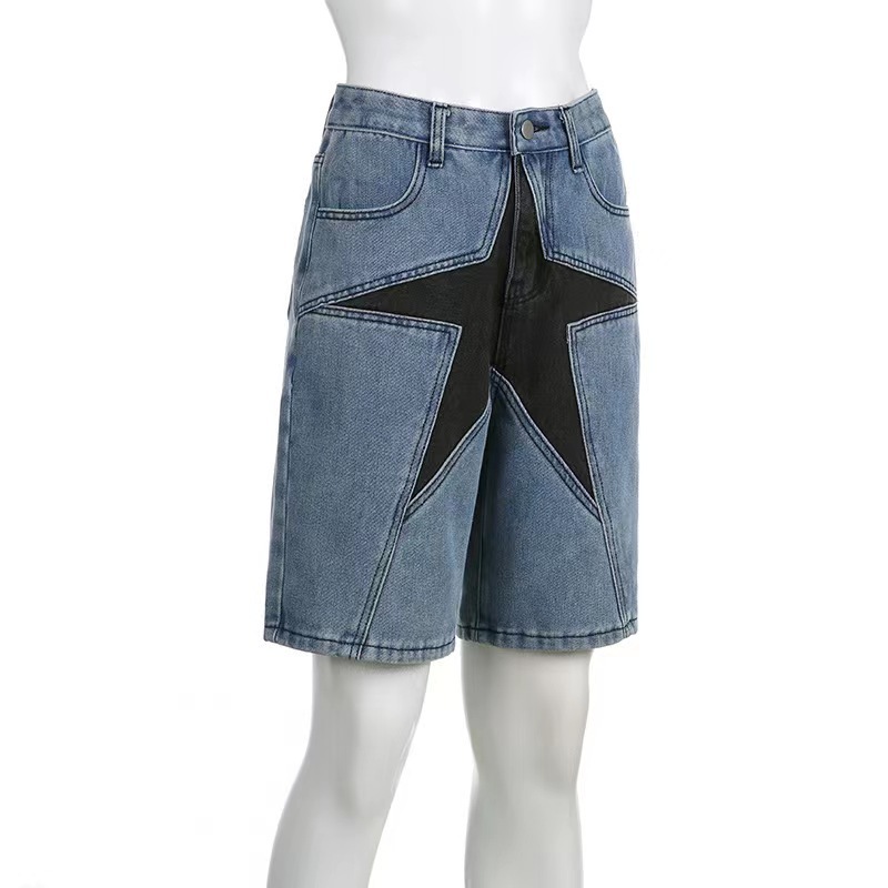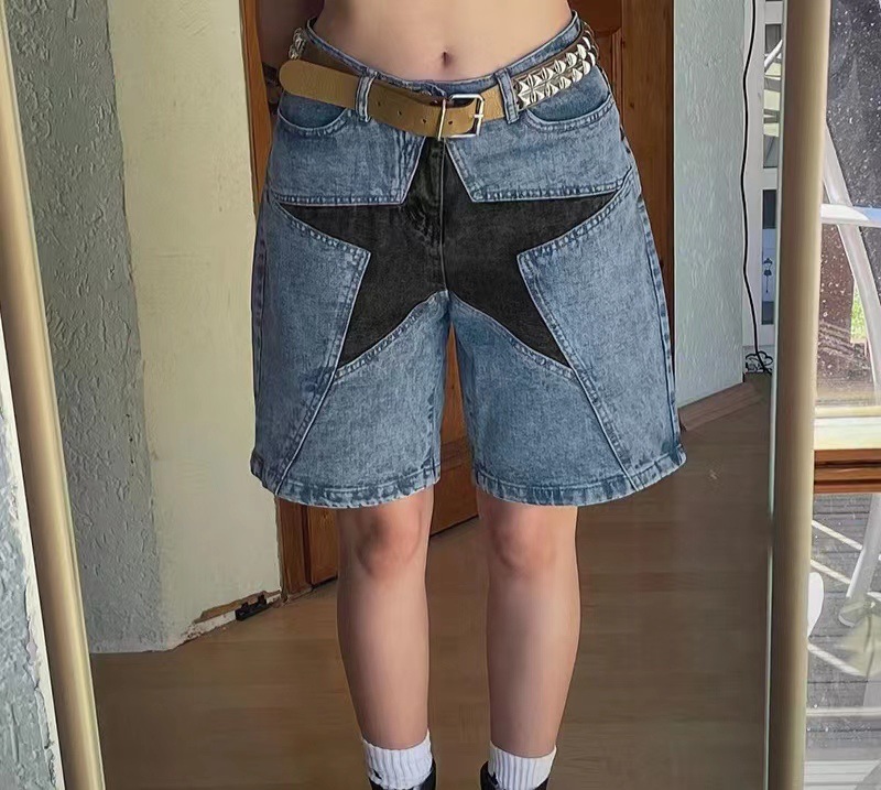 유럽과 미국 여성 의류 아마존 대외 무역 크로스 국경 거리 트렌드 느슨한 대비 색상 5 점 별 패치 데님 바지스토어 가기