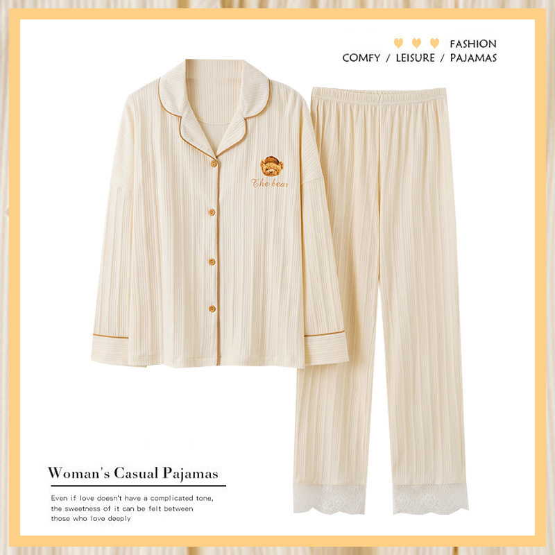 잠옷 여자의 봄과 가을 면 긴 소매 봄과 여름 중년 어머니의 격자 무늬 면 신장 면 가정 옷 세트스토어 가기