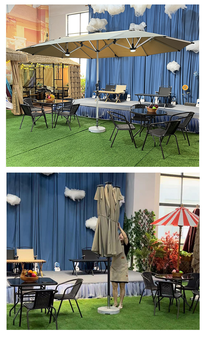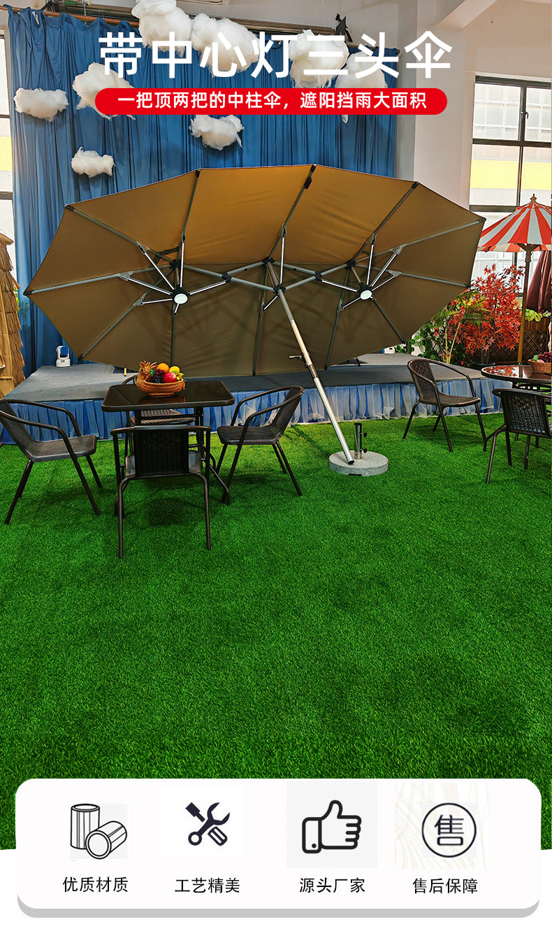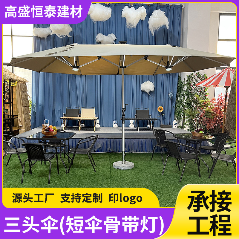 야외 세 머리 파라솔 빌라 안뜰 테라스 우산 마구간 상업용 태양열 LED 조명 카페 중간 기둥 우산스토어 가기