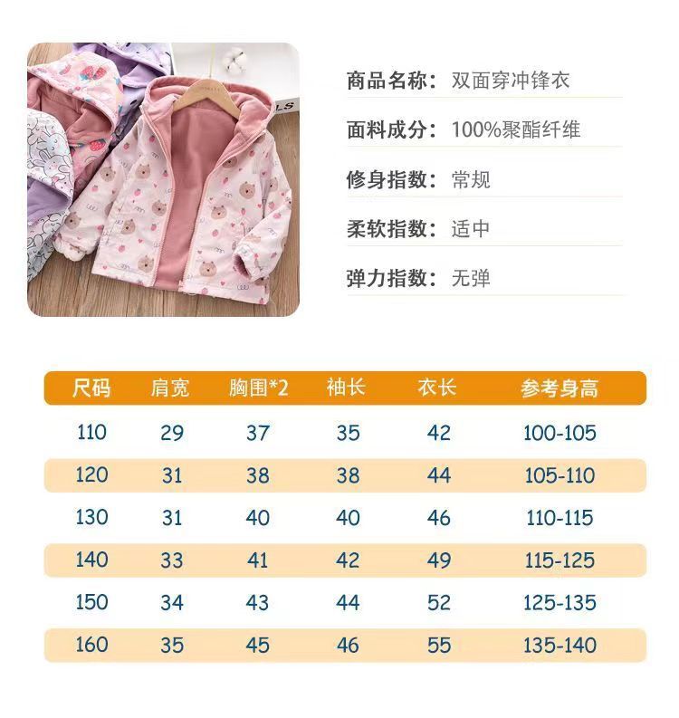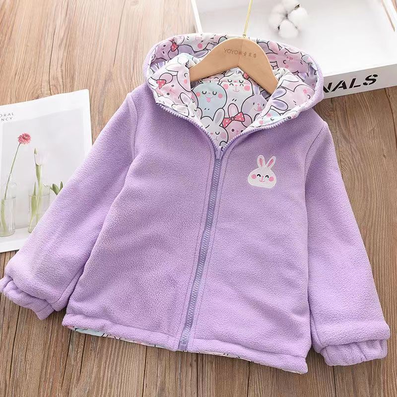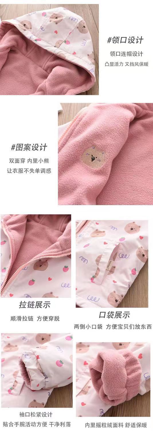 서양식 아동복 봄 아동 및 여아 양면 기모 재킷 코트 아기의 만화 지퍼 셔츠