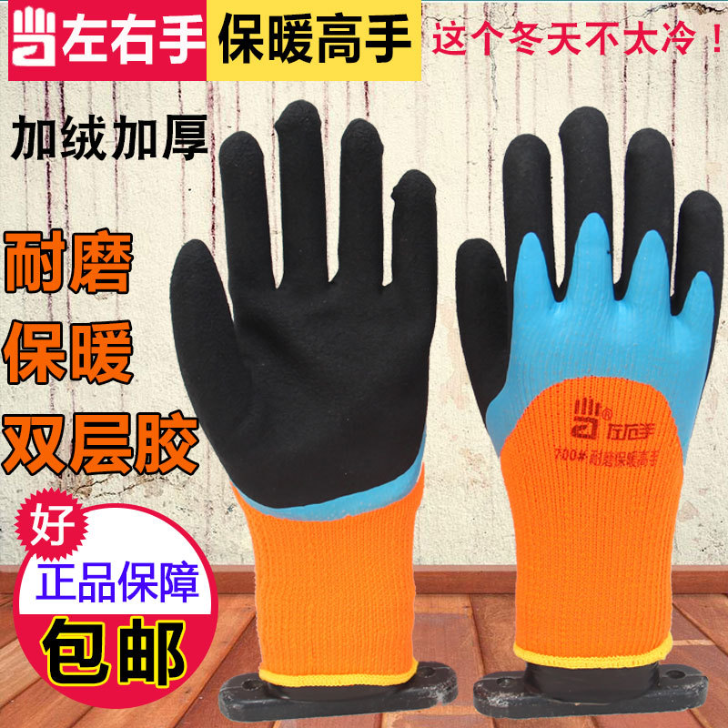 오른손과 왼손 700 # 노동 보호 장갑 기모 고무 내마모성 방수 미끄럼 방지 콜드 디핑 작업으로 두껍게 따뜻하게