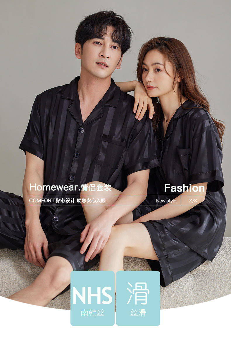 커플 잠옷 여름 아이스 실크 얇은 여성용 반팔 2023 여름 시원한 얇은 아웃웨어 홈웨어 세트스토어 가기