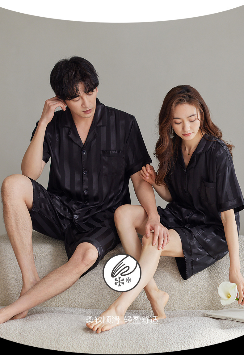 커플 잠옷 여름 아이스 실크 얇은 여성용 반팔 2023 여름 시원한 얇은 아웃웨어 홈웨어 세트
