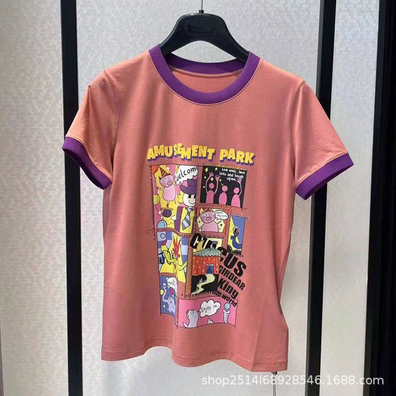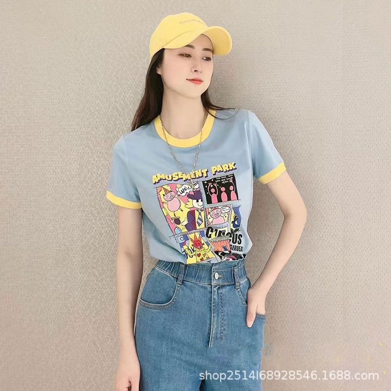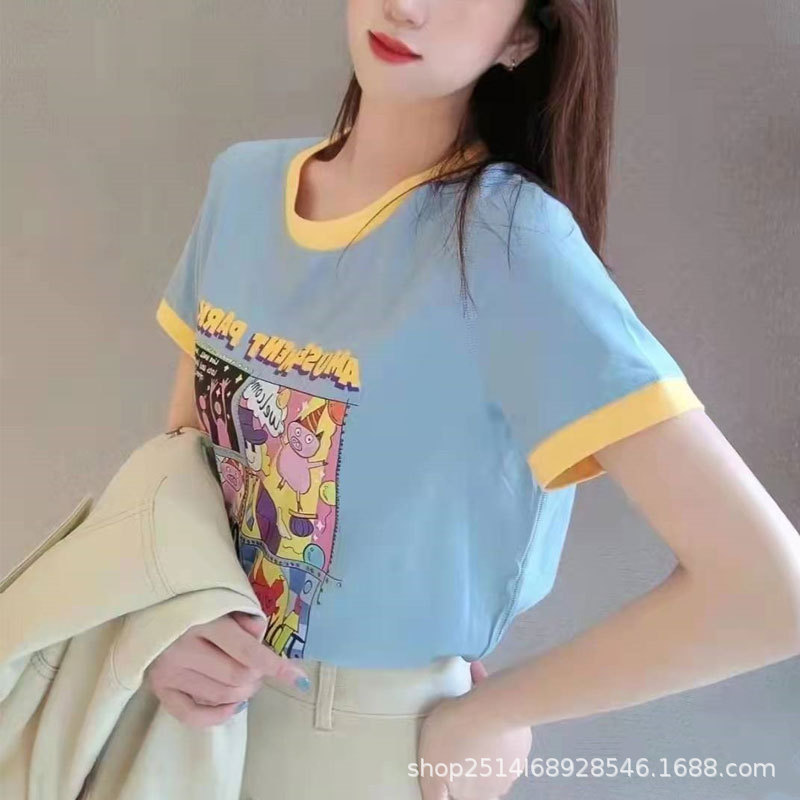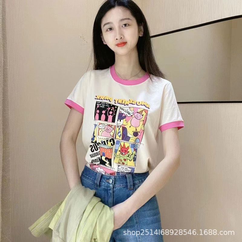 브라더스 뉴 여름 2023 올매치 슬림핏 올매치 캐주얼 카툰 프린트 반팔 티셔츠 여성 연령 감소 탑스토어 가기