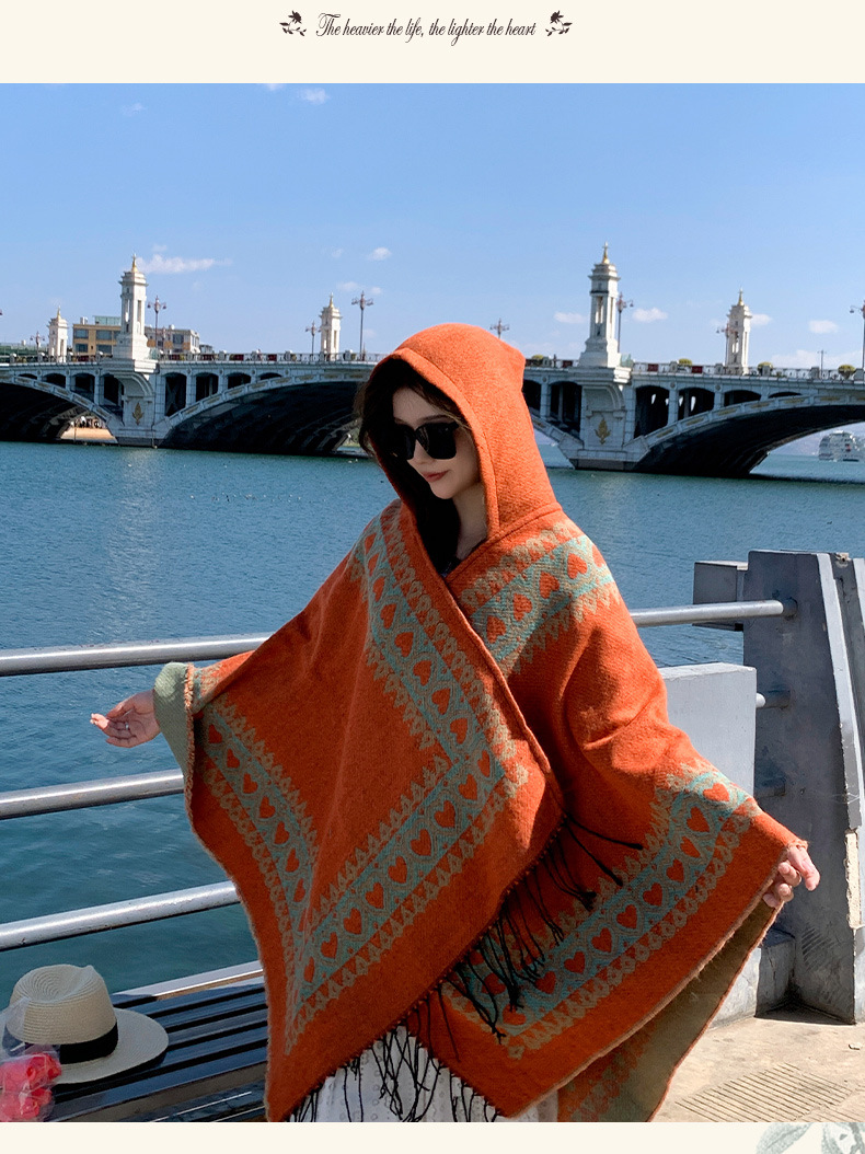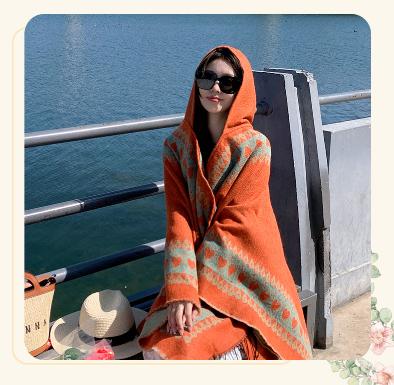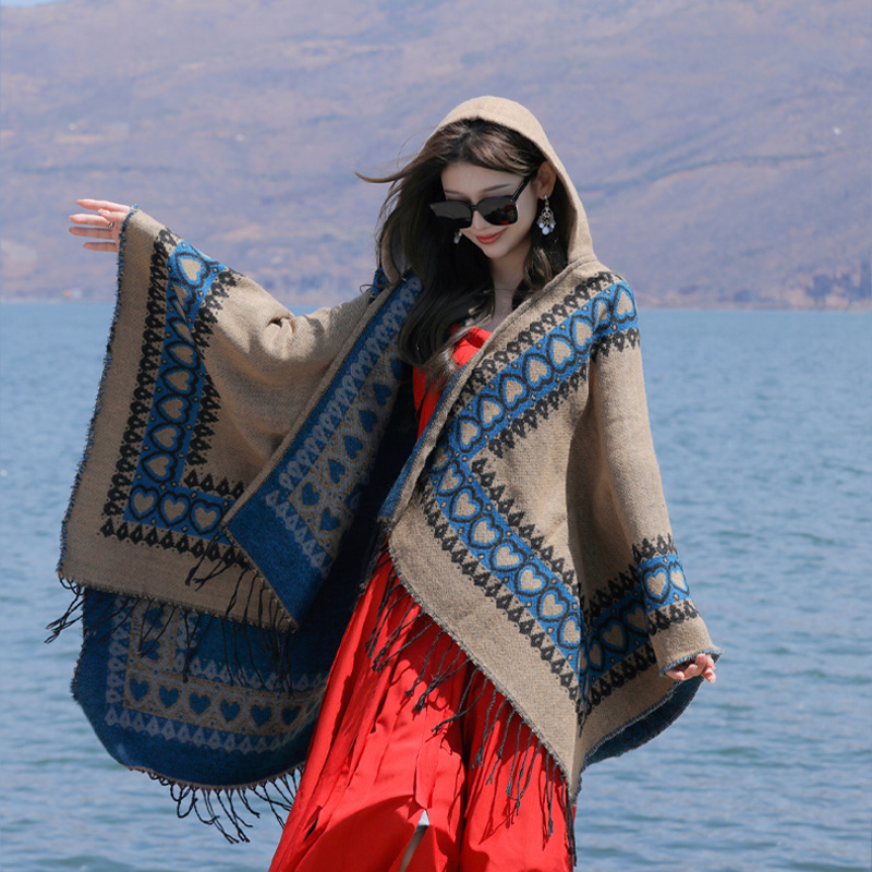 야외 레저 여행 망토 국경 작은 사랑 니트 패션 개인화 된 여성의 편안한 통기성 외부 케이프스토어 가기